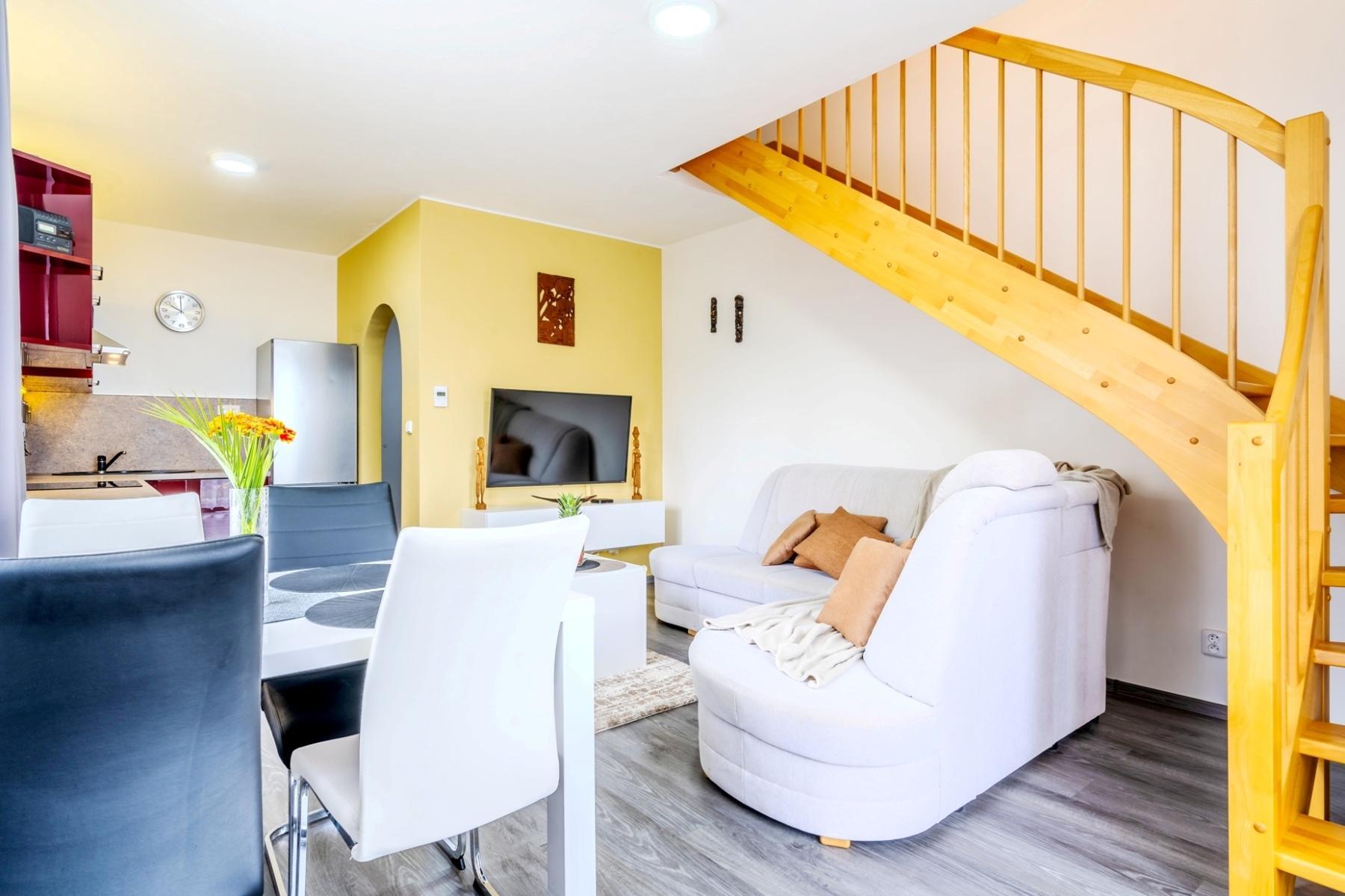 Dovolte mi představit mezonetový byt v novostavbě rodinného domu zkolaudovaného v roce 2018. Na první pohled Vás, oproti jiným bytům v místě, zaujmou prakticky řešené změny původní dispozice. Rozšířená vstupní chodba s vestavěnými skříněmi a bočním průchodem do obývací části, díky čemuž vznikla plocha pro nástěnnou TV a v horním patře prostorná koupelna s rohovou vanou a dvěma umyvadly. Velkou devizou je bezesporu již založená a vzrostlá zahrada přes celou délku parcely. Hledáte-li klidné místo, žádanou lokalitu, moderní bydlení, kvalitní provedení bytu i dobrou dopravní dostupnost, čtěte dál.