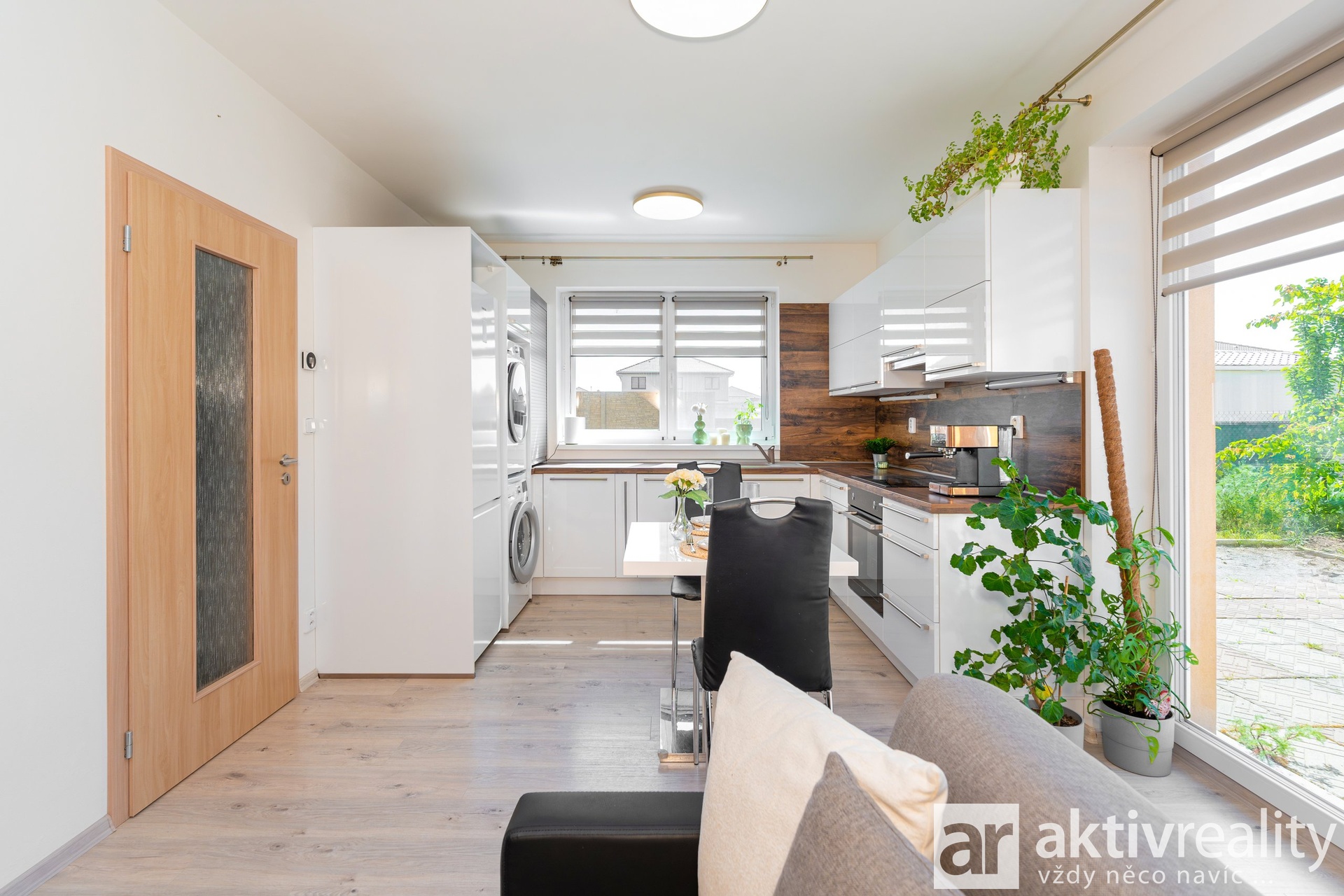 - kuchyňská linka včetně spotřebičů (myčka, pračka, sušička, mikrovlnná trouba, sporák s digestoří)