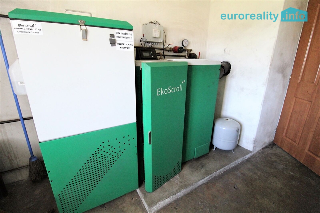 Při vstupu do přízemí narazíte na moderní kuchyň, prostorný obývací pokoj a koupelnu se sprchovým koutem. Navíc zde najdete společenskou místnost, ideální pro rodinná setkání a společné aktivity. K dispozici je také kotelna s automatickým kotlem na tuhá paliva, která zajišťuje účinné vytápění domu v chladnějších měsících. Na střeše domu jsou solární panely, které pomáhají zajistit ohřev vody, což je další významná úspora nákladů.