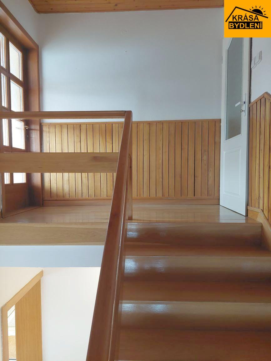 Exkluzivní prodej samostatně stojícího zatepleného cihlového podsklepeného domu s garáží cca 2,5 km od Valašského Meziříčí. Zastavěná plocha a nádvoří 124 m2, zahrada 696 m2. Střecha sedlová - pálená taška Bramac. Voda a kanalizace obecní. Plastová okna a vchodové dveře. Elektřina v mědi 400/220 V. Topení ÚT - plynový kondenzační kotel, krbová kamna. Ohřev užitkové vody solárními panely. Podlaha - dlažba, parkety, plovoucí podlaha. Dřevěné zárubně a dveře. 1. NP - 2+kk, samostatná koupelna a samostatná toaleta, komora, vstupní chodba, technická místnost. 2. NP - 2 pokoje, samostatná koupelna a samostatná toaleta, terasa. Kuchyňská linka na míru, včetně vestavěných spotřebičů (plynová varná deska, elektrická trouba, digestoř, mikrovlnka, myčka). Skříně na míru, dřevěné schodiště. Na zahradě zastřešená pergola s venkovním posezením, krytým bazénem a skleníkem. Dálkově ovládaná brána s vjezdem na pozemek. Dům je volný ihned a nabízí komfortní bydlení v klidné a malebné části obce obklopené Hostýnskými vrchy a Podbeskydskou pahorkatinou. Možnost financování naším hypotečním centrem.