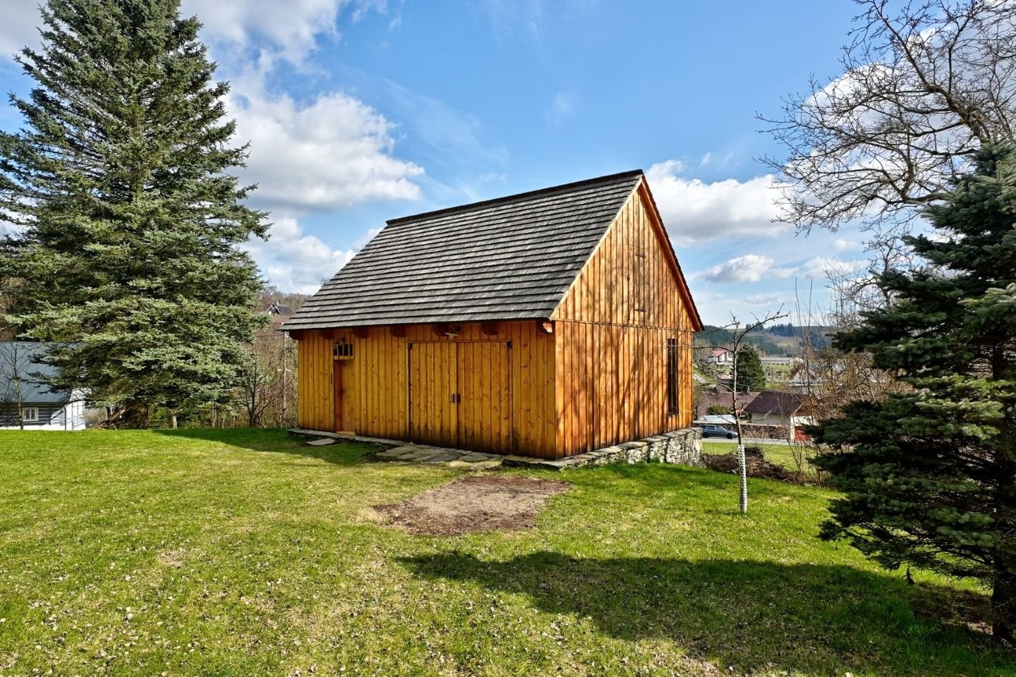 Sen každého chalupáře. Chalupa, která byla součástí rozsáhlého hospodářství, jedno z původních stavení nacházející se v klidné, okrajové části obce Poniklá, zmiňovaná v místních publikacích jako Krejčův statek. Taková je chalupa, která prošla za poslední roky rekonstrukcí. Poskytuje klid a odpočinek v prostorách, kde je zachováno množství původních prvků s citlivým doplněním moderního vybavení s důrazem na přírodní materiály. Celé přízemí chalupy je řešeno nadstandardně. Původní hospodářský a obytný prostor je rozdělený vstupní klenutou chodbou s kamennou podlahou vyhřívanou teplovodním podlahovým topením. Z ní se vstupuje do prostorné světnice s kachlovými kamny a navazujícího malého pokoje. Z hospodářské části vznikla ložnice a zázemí kuchyně s jídelnou. Z chodby se dále vchází do koupelny s toaletou, černé kuchyně, kde je umístěna technologie vytápění, do kamenného sklepa a po schodišti do podkroví. V prostoru podkroví, jehož převážná část je ponechána na dokončení dle představ nového majitele, jsou dva pokoje. Na upraveném pozemku, přes který protéká malý potůček, je umístěna stodola, sloužící pro skladování zahradní techniky a uložení materiálů. Při prohlídce Vás rádi provedeme domem a sdělíme více podrobností.