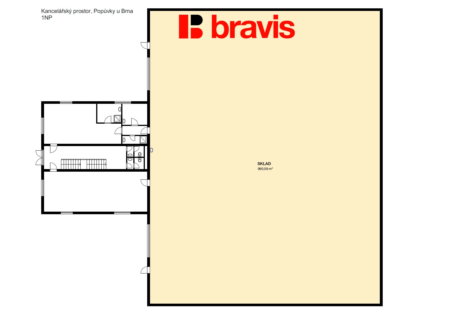 K dispozici jsou i kanceláře ve stejné budově (59,5m2 a 19,4 m2 ).