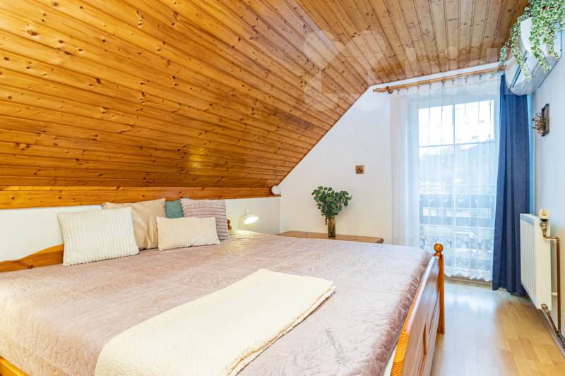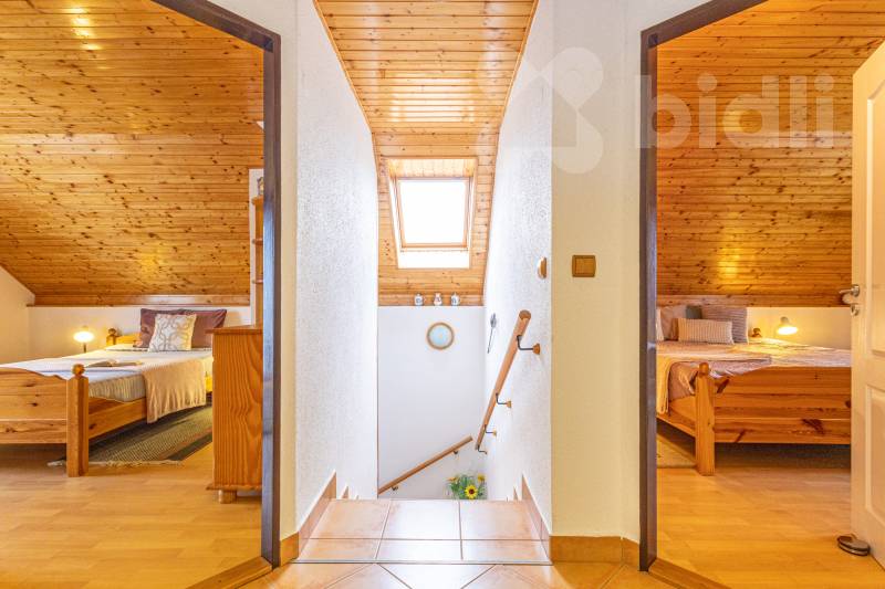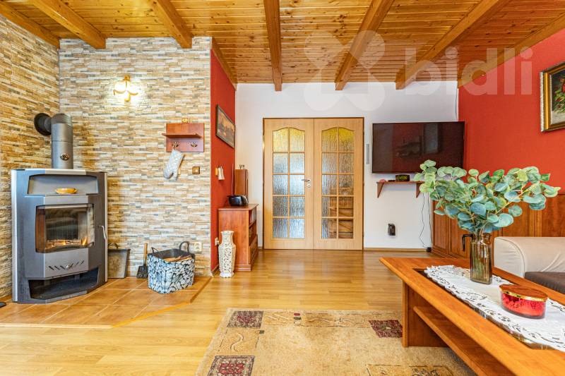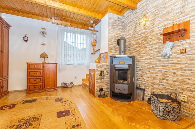 Vytápění: krbová kamna s výměníkem + v některých pokojích elektrické infra panely, v hlavní ložnici je klimatizace