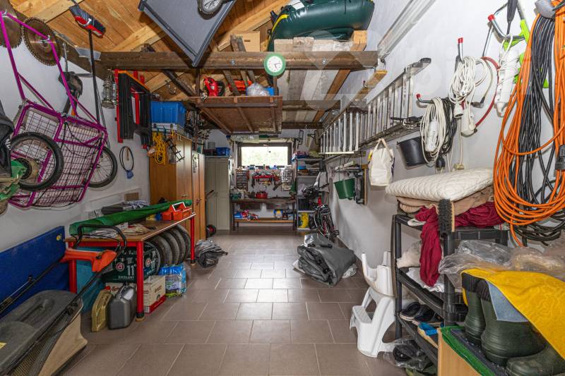 Dům se prodává včetně veškerého nábytku a vybavení. Majitelé si odvezou jen pár osobních věcí. Součástí je také plně vybavená garáž - ruční, elektrické i zahradní nářadí.