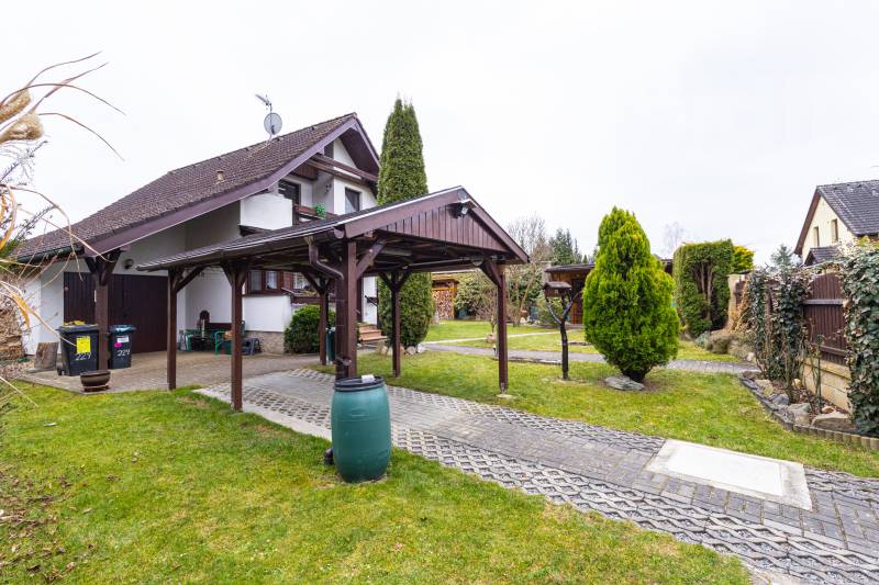 Prostorná garáž + zastřešené parkovací stání před domem