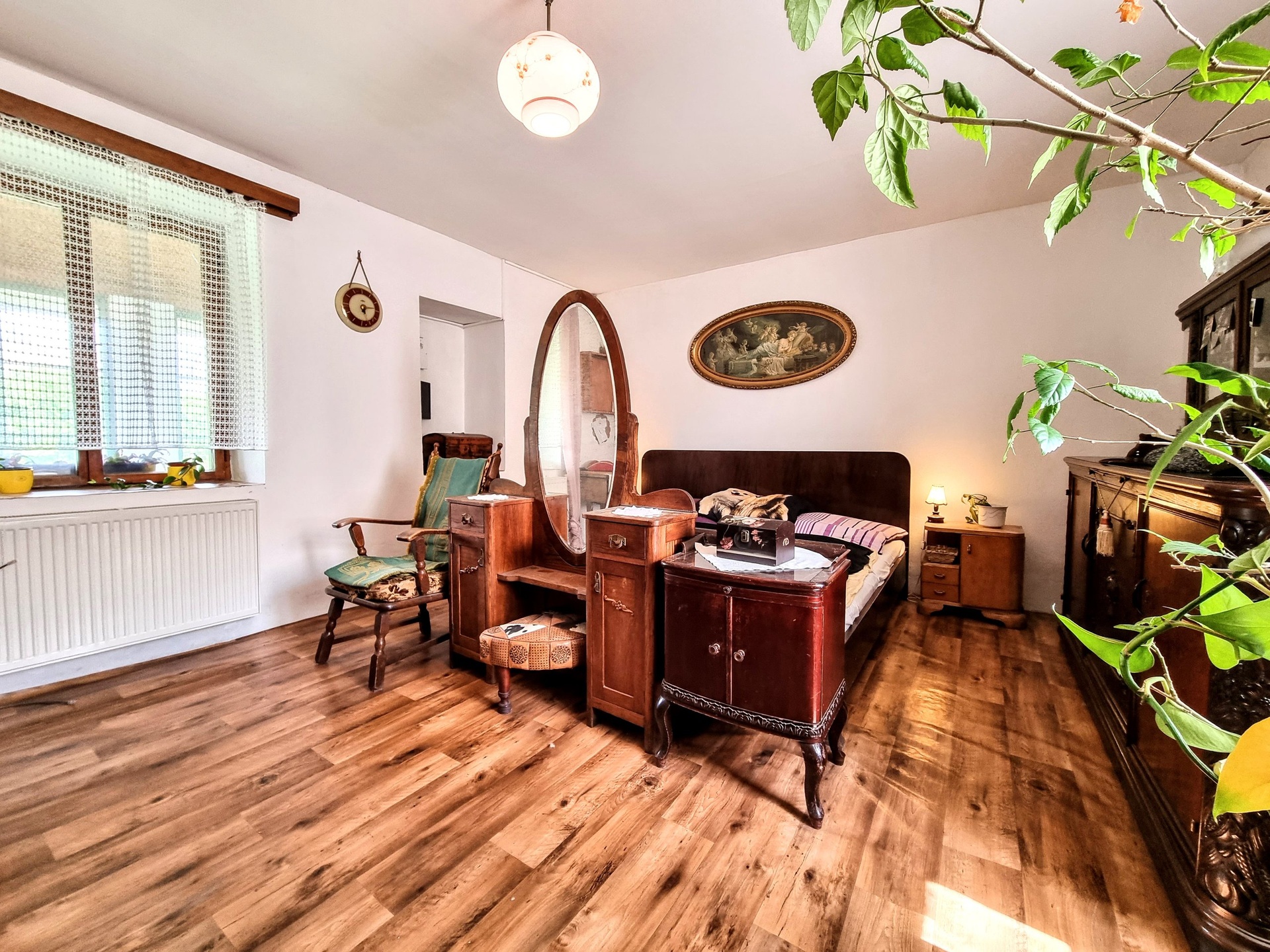 Vstupem do domu se dostanete do prostorného obývacího pokoje, kde na vás dýchne atmosféra klidu a pohody. Najdete zde útulnou koženkovou sedací soupravu a malebná krbová kamna s rozvodem do radiátorů pro příjemné vytápění celého domu.