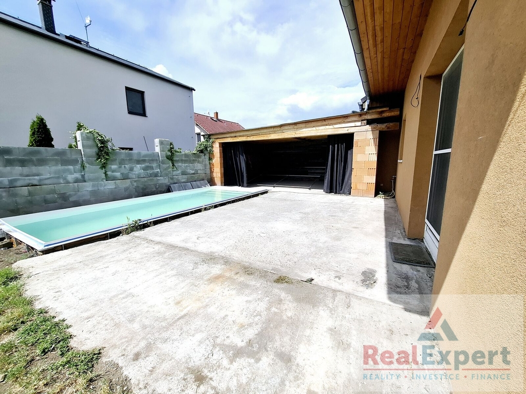 Nabízíme k prodeji prostorný rodinný dům z roku 2009 o dispozici 5+kk, užitná plocha 149 m2 + garáž, situovaný v klidné části obce Postřižín. Dům je postaven na rovinatém pozemku o celkové výměře 427 m2, jehož součástí je prostorná pergola a bazén s protiproudem. V přízemí domu je prostorný obývací pokoj s krbem, přes který je přímý vstup na venkovní terasu a zahradu, dále chodba se schodištěm, koupelna se sprchovým koutem, samostatné WC, technická místnost a kuchyň. Kuchyňská linka je vybavena vestavnými spotřebiči. Prostorná garáž má elektricky ovládaná vrata. V horním patře domu jsou 3 samostatné ložnice, menší pracovna či šatna a koupelna s vanou a WC. Topení je řešeno elektrokotlem nebo krbem, který rozvádí teplý vzduch do všech místností v horním paře, vodu ohřívá boiler. Skvělá občanská vybavenost díky nově otevřenému nákupnímu centru jen 3 minuty jízdy od domu, další služby jsou dostupné v Kralupech či Odolene Vodě (dojezd cca 10 minut), dojezd do Prahy cca 15 min. po dálnici D8. Klidná lokalita se skvělou dostupností. Zajímavá příležitost. Doporučujeme.