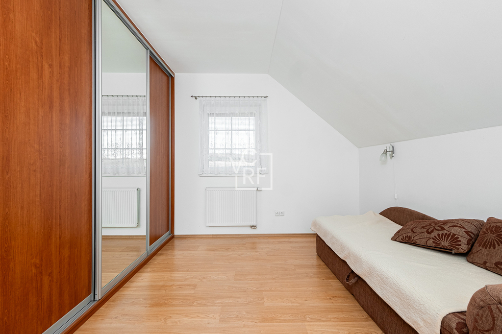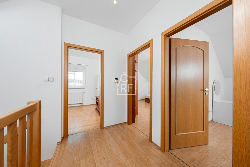 V 1NP se nachází vstupní chodba, technická místnost, WC, prostorný obývací pokoj s krbem a navazujícím kuchyňským koutem. 2NP disponuje třemi ložnicemi, koupelnou s vanou a toaletou. K jedné z ložnic náleží balkón o velikosti 4,5 m² s výhledem do zahrady.