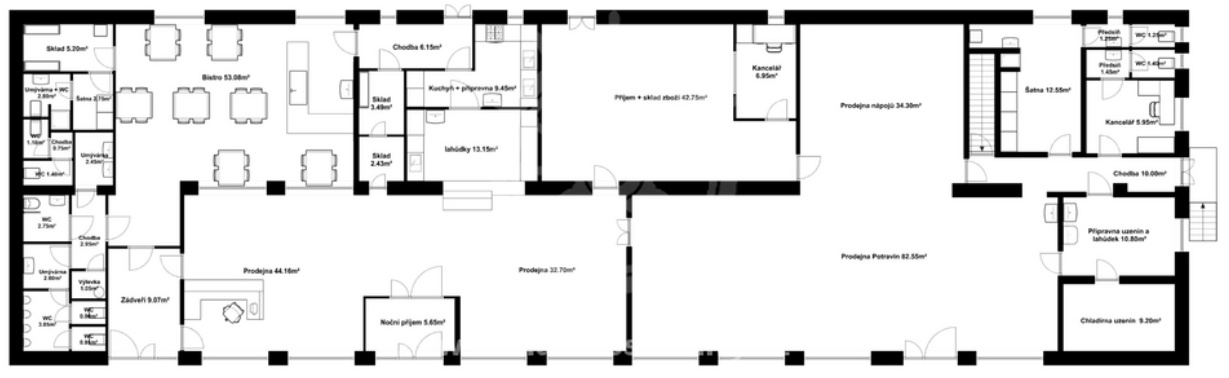 Jedná se obchod s potravinami, který je pravidelně zásobován kvalitními produkty. Prostor je dobře prosvětlený, zařízený a nabízí příjemné prostředí pro zákazníky. Prostor lze v případě potřeby jednoduše rozdělit a provozovat dvě různé prodejny.