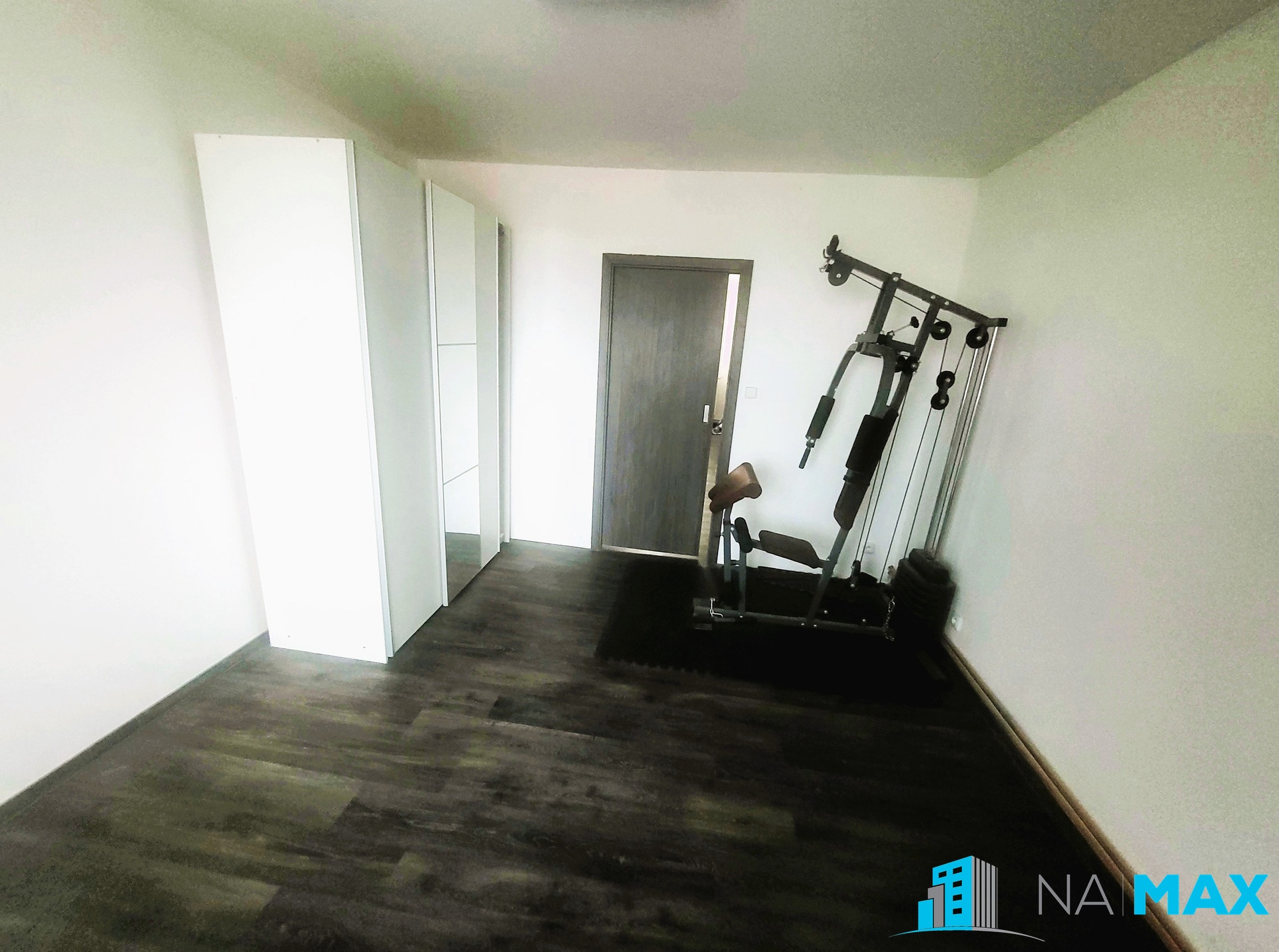 kuchyň - kuchyňská linka s varnou deskou, vestavnou troubou, myčkou a digestoří. V koupelně je k dispozici pračka a sušička, v obývacím pokoji zůstává stěna a v ložnici šatní skříň. Vytápění i ohřev vody zajišťuje elektrokotel.