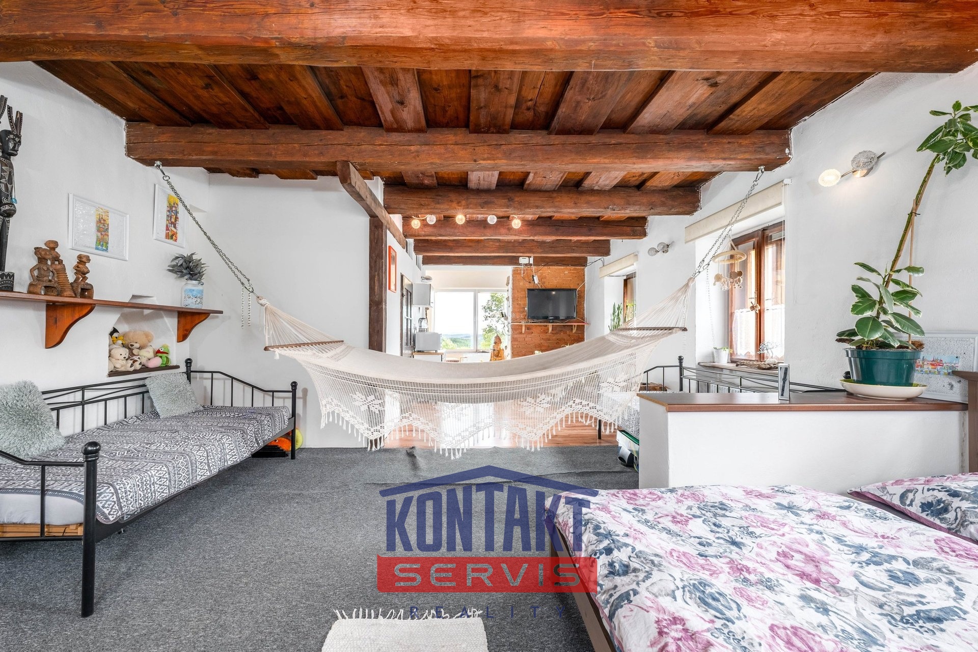 Nemovitost představuje také skvělou investiční příležitost. Tři samostatné apartmány – každý s vlastní koupelnou, WC a kuchyní – jsou ideální pro provoz luxusního penzionu. Díky samostatným vstupům přes společnou chodbu lze apartmány využít i jako prostorné pokoje pro početnější rodinu nebo je nabídnout k dlouhodobému pronájmu. Podkrovní loft s úchvatnou koupelnou pak nabízí soukromí pro samotné majitele. Ubytovací kapacita až pro 12 osob znamená významný potenciál pronájemního příjmu. Strategická poloha na úpatí Šumavy přitahuje hosty celoročně – v létě na pěší výlety a cyklistiku, v zimě na lyžování.