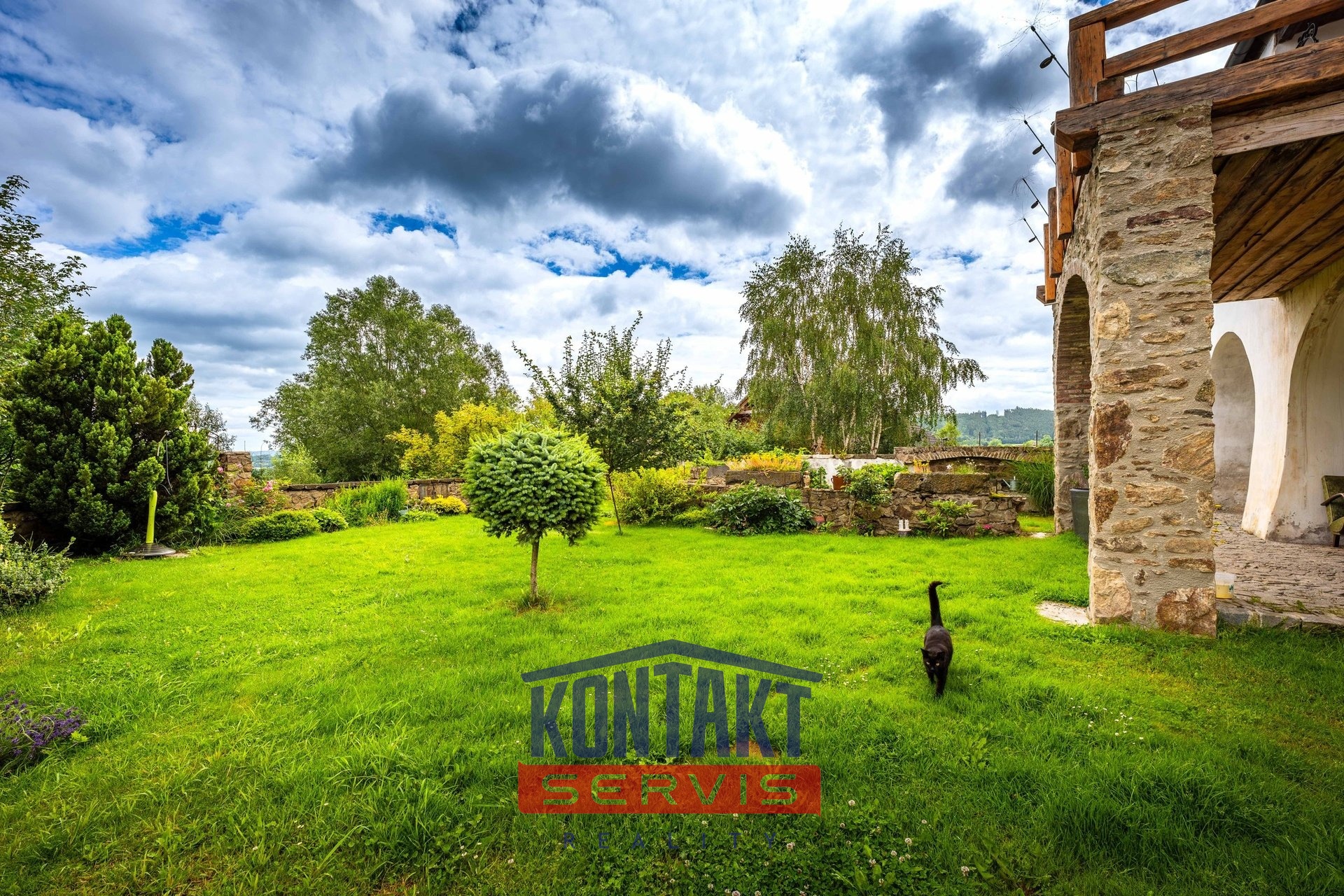 Romantická zahrada a terasa s výhledem na šumavskou krajinu nabízejí prostor pro odpočinek i venkovní aktivity na pozemku o rozloze 972 m². K dispozici je 5 parkovacích míst. Blízkost Husinecké přehrady a dostupnost veškerých služeb v pouhých 3 km vzdálených Prachaticích činí z této nemovitosti skutečný klenot. Dům je napojen na obecní vodovod a vybaven vlastním septikem a centrálním kotlem na tuhá paliva.