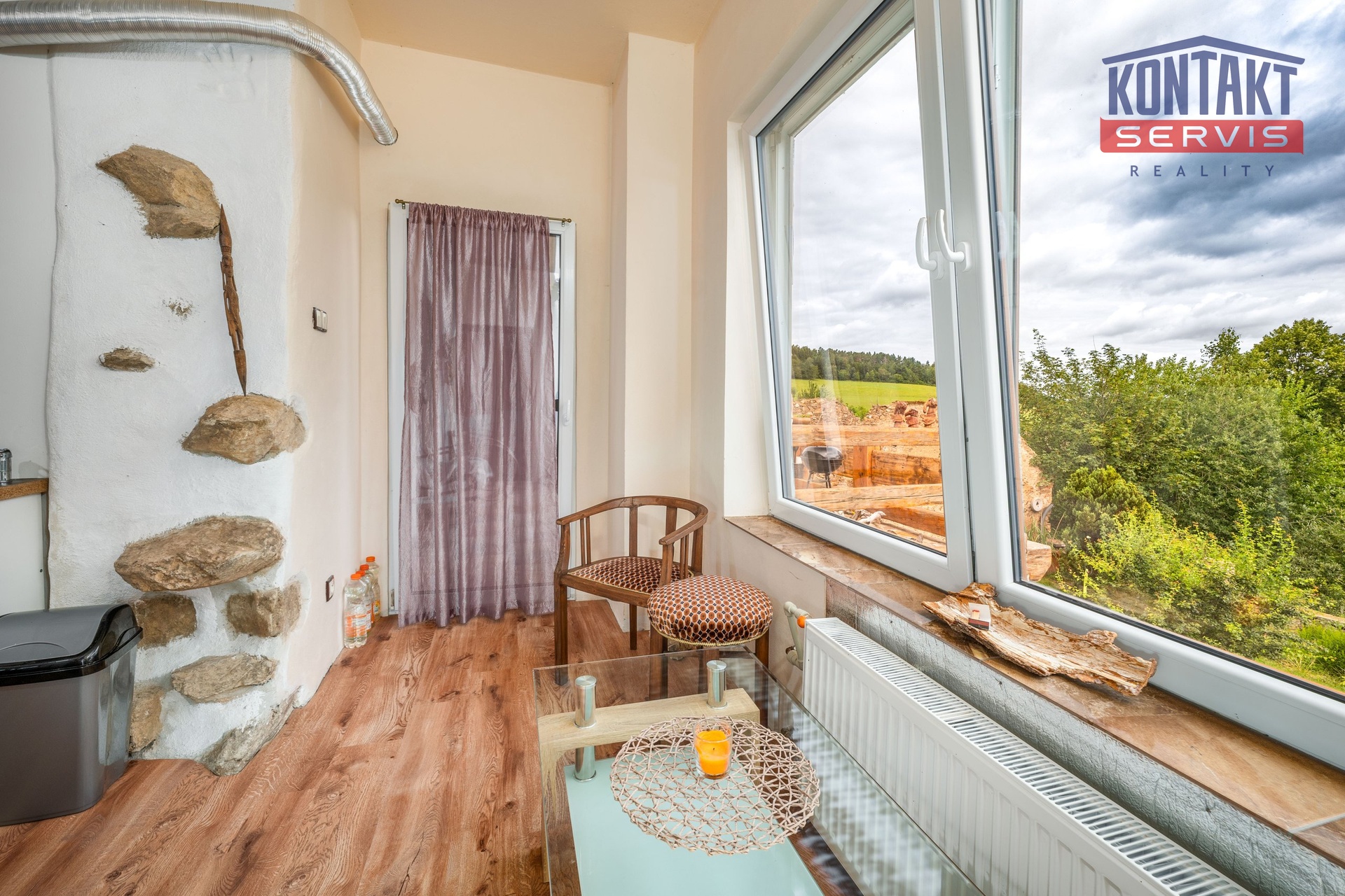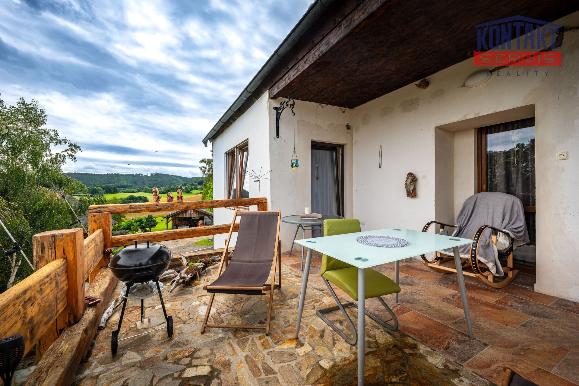 Z obývací části se vstupuje na prostornou terasu, která přímo vybízí k ranní kávě, večernímu posezení nebo třeba pěstování rostlin. Klidné výhledy a čerstvý vzduch jsou zárukou relaxace po náročném dni.