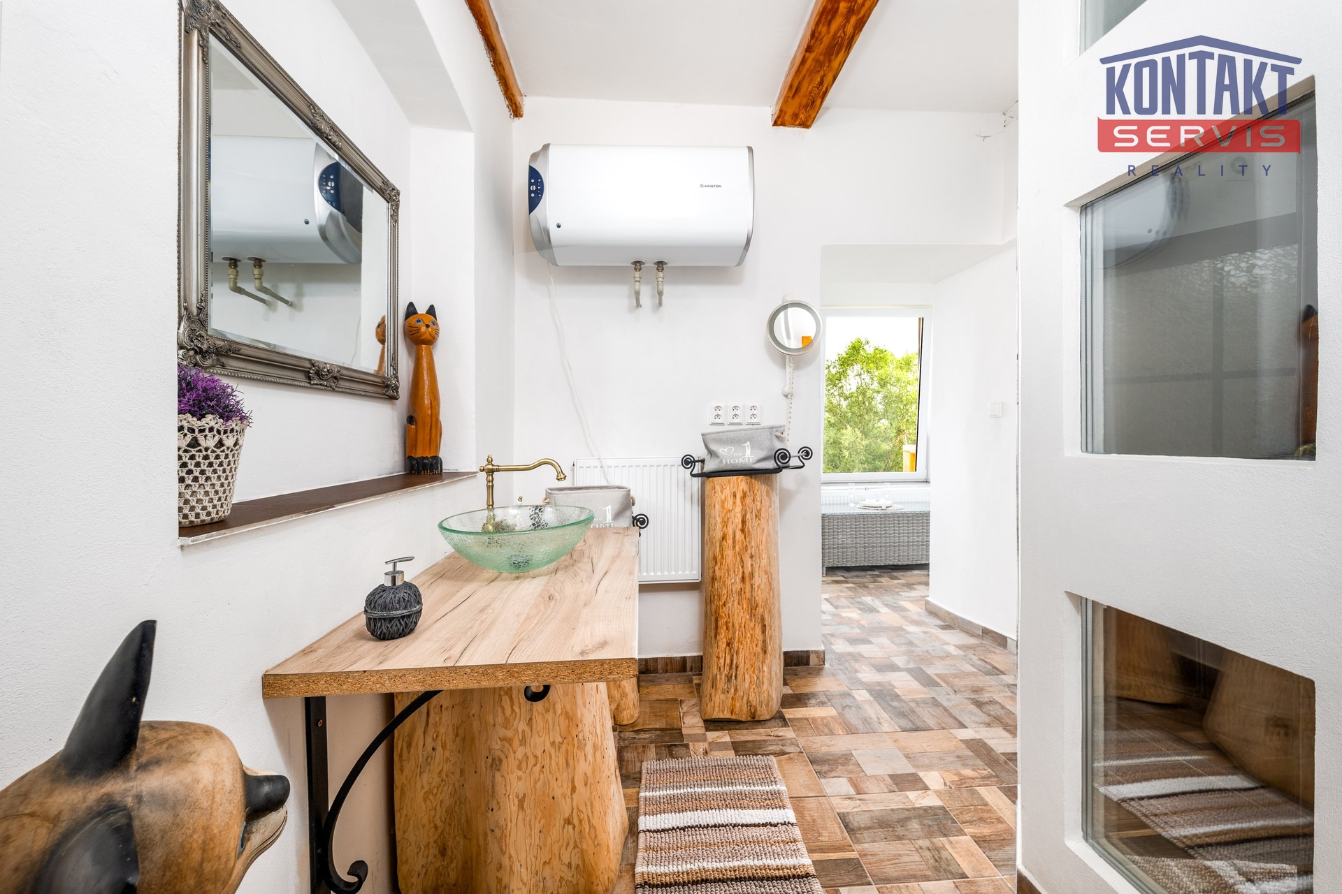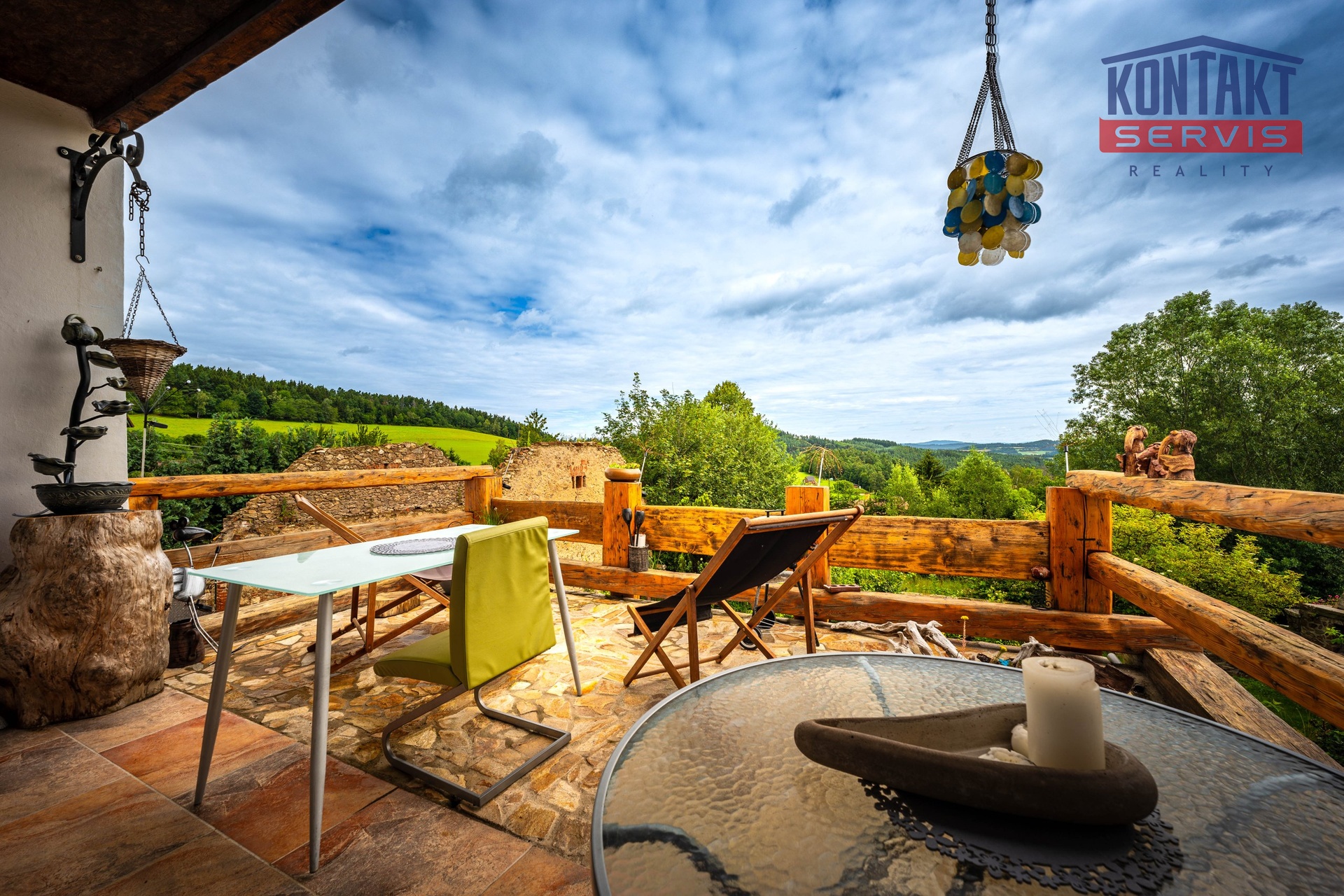 Z obývací části se vstupuje na prostornou terasu, která přímo vybízí k ranní kávě, večernímu posezení nebo třeba pěstování rostlin. Klidné výhledy a čerstvý vzduch jsou zárukou relaxace po náročném dni.