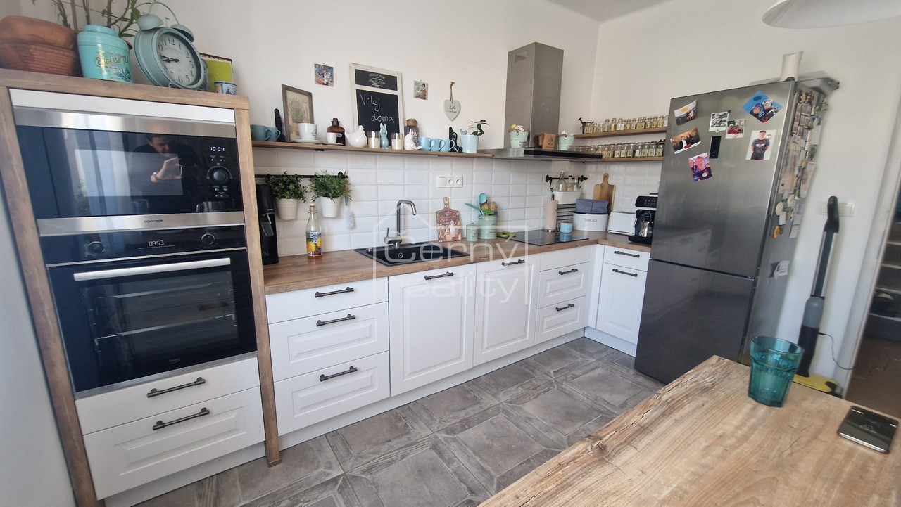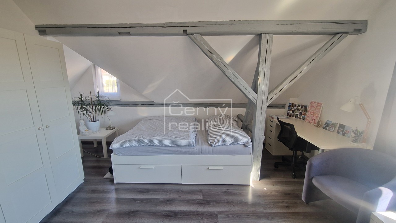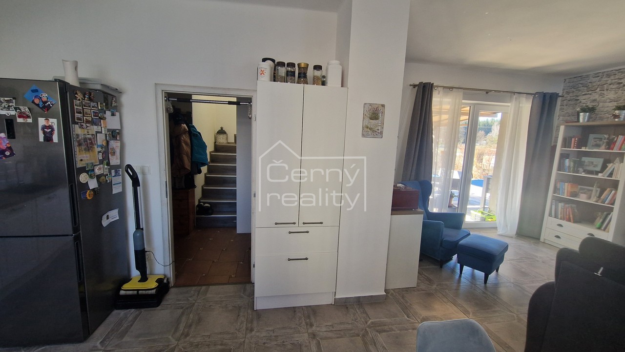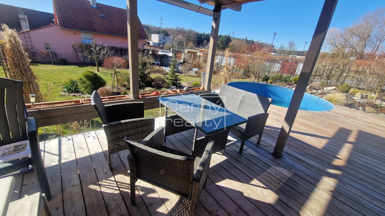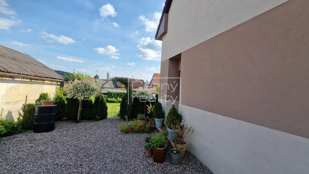 Prodej RD 3+1, o ploše 110 m2, po částečné rekonstrukci, na pěkném místě, na konci ulice Ke Stadionu, v Prachovicích, č.p. 113. Dům prošel v uplynulých pěti letech zásadnější rekonstrukcí. Zateplení, nová plastová okna, podlahové elektrické topení - systém Fenix, s termostatem v každém pokoji. Nové plovoucí podlahy, sádrokartony, v podkroví jsou přiznané původní trámy, nová kuchyňská linka, nová terasa s přístupem až k bazénu, zastřešená pergola a bazén o rozměrech 3,66 x 1,5m.Dispozice v m2 - přízemí : Vstupní chodba 5,2m2, kuchyň s vestavěnými spotřebiči 14m2, obývací pokoj 22m2 s východem na pergolu 13m2 a terasu k bazénu, terasa o ploše 22 m2, z modřínových prken. V přízemí je ještě koupelna s vanou, el. bojlerem a oknem na zahradu, o ploše 6,4m2. Do 1.patra se vchází po schodišti, se stupni z plovoucí podlahy, chodba s úložnými prostory v 1.patře o ploše 5,8m2, pokoj1 s přiznaným trámovím a dvěma okny o ploše 21m2, další pokoj2 o ploše 23m2. Udržovaná zahrada s plechovým skladem. Vlastní kopanná studna, s čerpadlem. Zastavěná plocha domu je 246 m2. Plocha zahrady je 594 m2. Celková plocha pozemku je 840 m2. Před domem jsou 2 otevřená parkovací stání a další 2 stání jsou za vjezdovou branou. Dům je částečně podsklepen. Doporučujeme prohlídku. ID 11325.