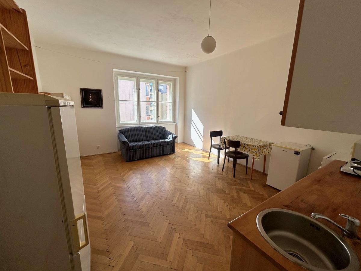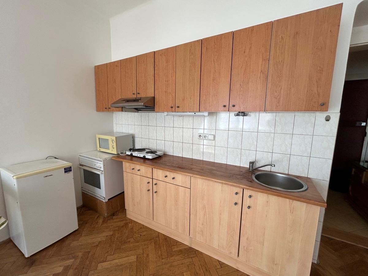 Dlouhodobý pronájem útulného bytu 1+kk v činžovním domě v Nuslích, ul. U Křížku. Byt je částečně zařízen základním nábytkem a spotřebiči. Možná instalace patra na spaní. Klidná lokalita, na zemi parkety a dlažba, v koupelně sprchový kout. K dispozici internet Vodafone. Do 2 osob, volné od 10.4. Vratná kauce 1 nájmu, provize 1 nájem. Prohlídky po dohodě.