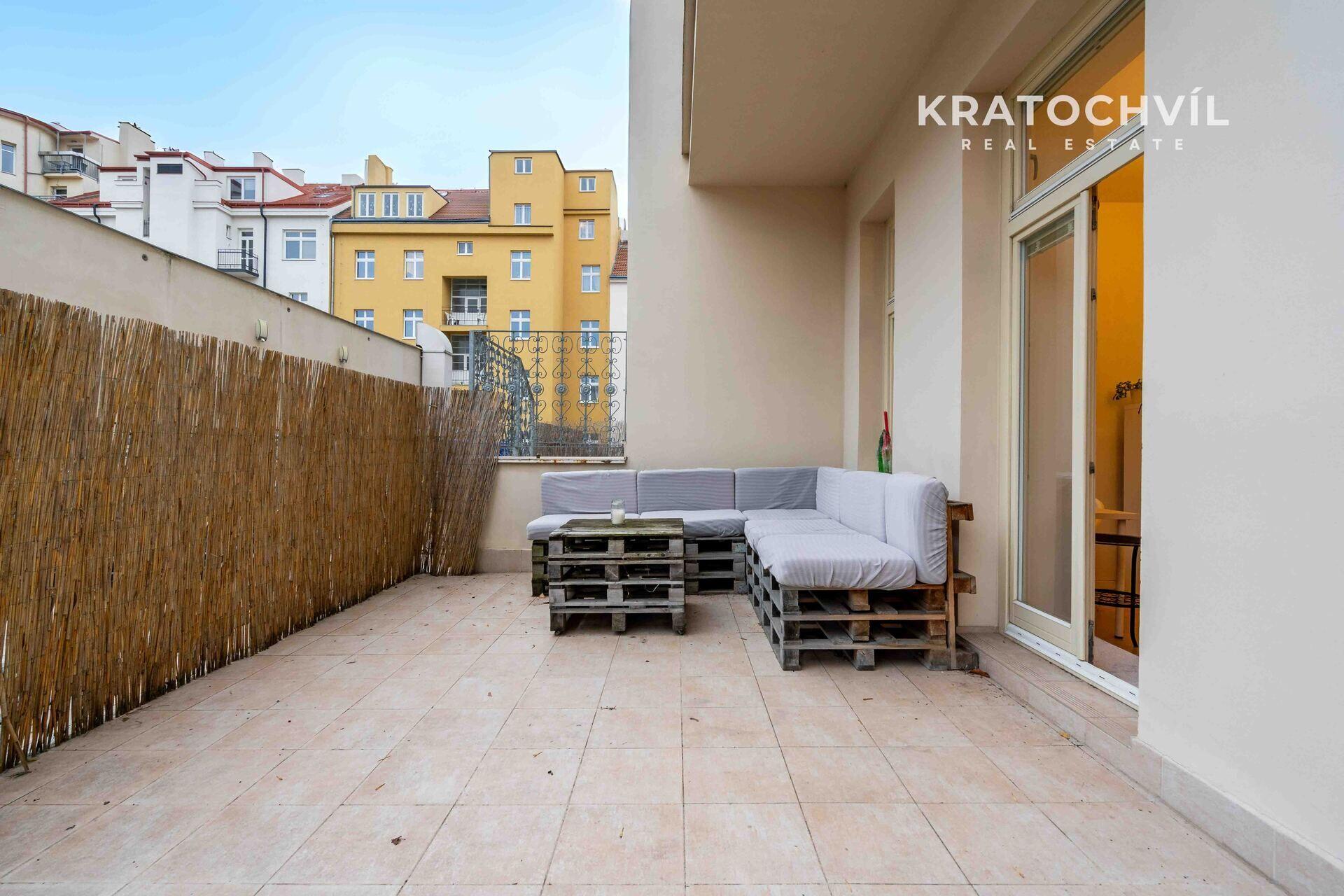 1+kk/T, 30m2, Praha 7 - Bubeneč, po rekonstrukci, terasa 22 m2