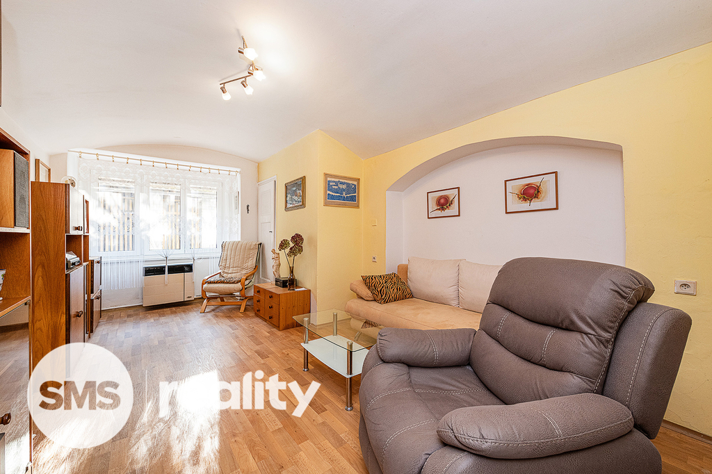 Byt je v původním stavu a nabízí skvělou možnost rekonstrukce dle vlastních představ. Díky orientaci oken na jih, do vnitrobloku, je byt i přes umístění v přízemí velmi světlý. Nenabízí výhled, ale poskytuje maximální soukromí a klid.