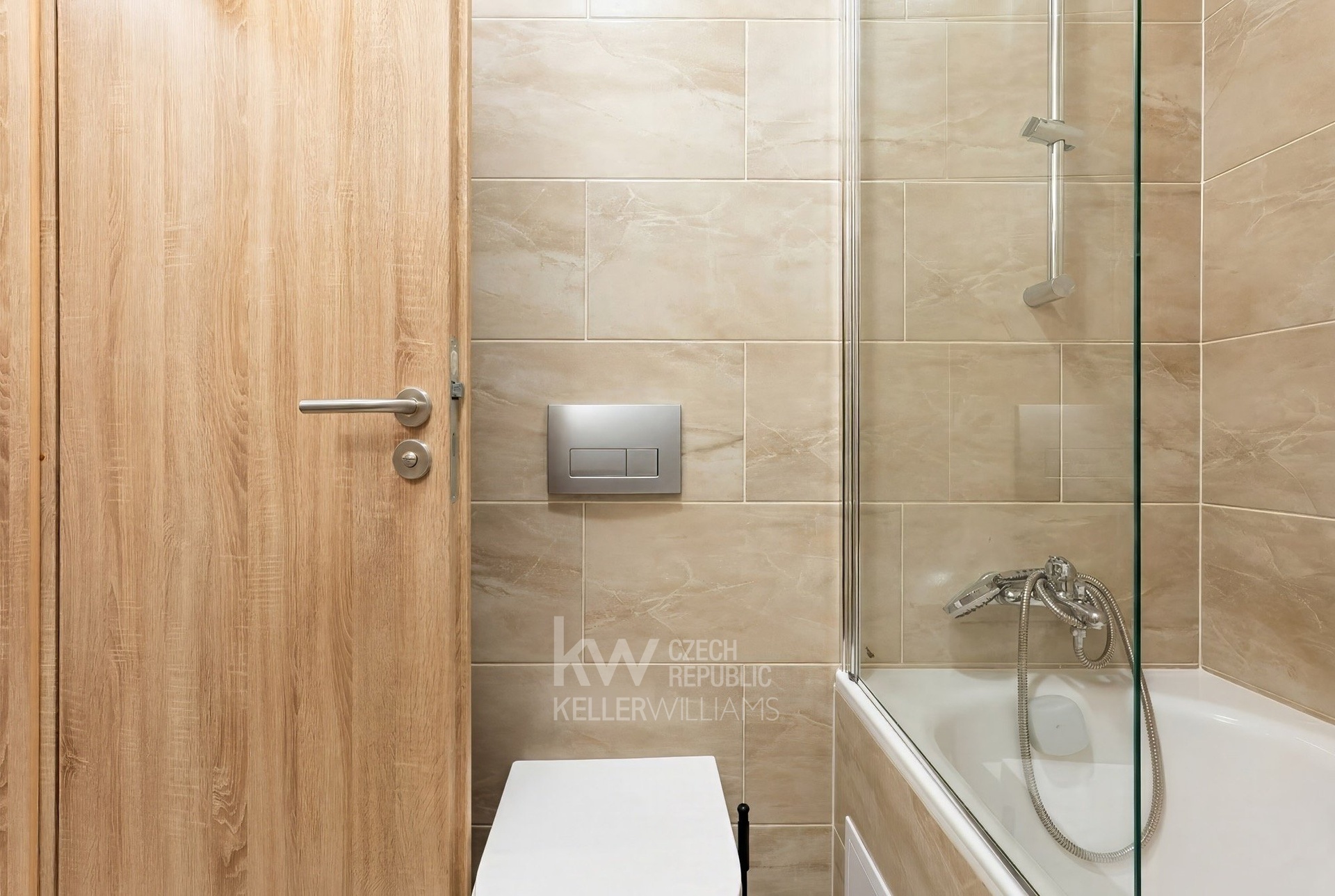 * Koupelna je nová a je vybavena vanou a toaletou. Vana je vybavena sprchovým sklem a držákem sprchy. Takže se můžete pohodlně sprchovat nebo si napustit vanu.
