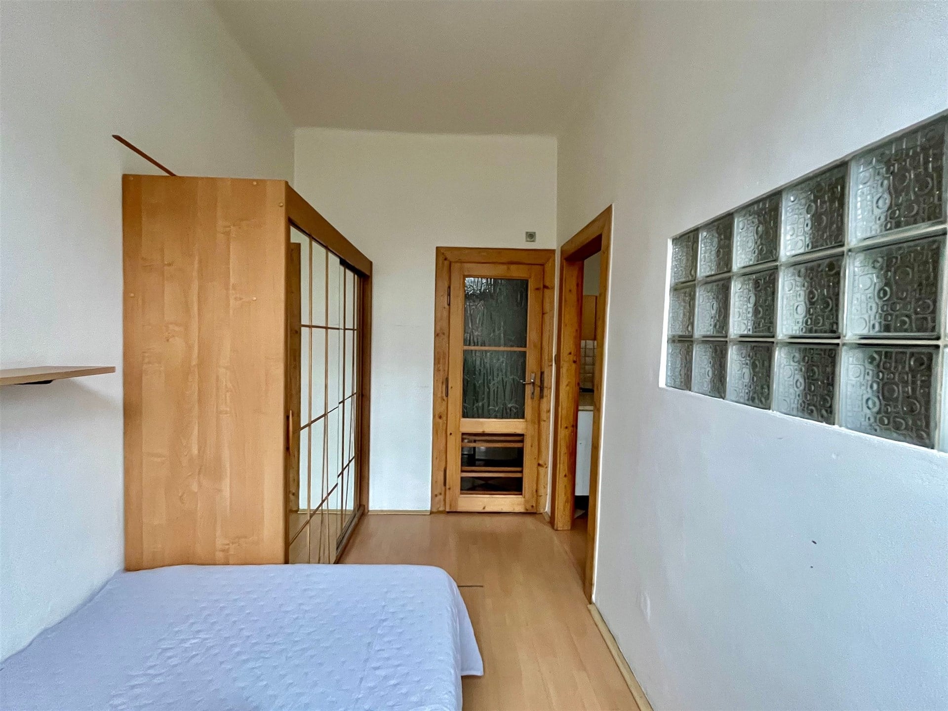 Obývací pokoj s kuchyňským koutem včetně plynové varné desky a el. trouby, digestoře, lednice s mrazákem a pračkou. Menší ložnice se vstupem do koupelny s vanou. Předsíň se samostatným WC.