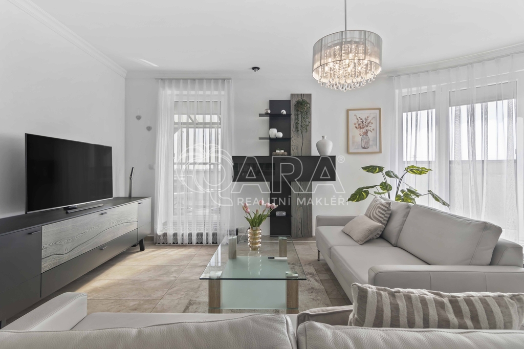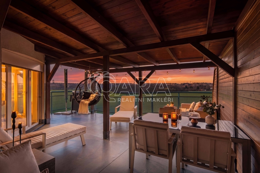 Byt 70 m2 + terasa 49 m2 ( včetně zimní zahrady) + velké parkovací stání + sklep. Na tenhle byt se ani nekoukejte, pokud hledáte klasiku. Tady se totiž neprodává „normální“ byt. Tady kupujete venkovní obývák.