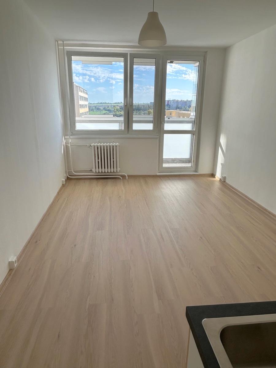 Dlouhodobý pronájem (3 roky a více) světlého bytu 2+kk s lodžií u stanice metra Hůrka. Byt o celkové užitné ploše 48m2 je situován v 7.patře osmipatrového panelového domu 2 minuty pěšky od stanice metra Hůrka. Podlahová plocha bytu je 41m2, součástí nemovitosti je prostorná lodžie 7m2 s jižní orientací, která zajišťuje dostatečné prosvětlení bytu a sklep 4m2 umístěný v přízemí domu. Byt prošel částečnou rekonstrukcí, dispozičně nabízí pokoj s kuchyňským koutem (18,25m2), pokoj (13m2), předsíň (4,5m2), koupelna s vanou a WC (5,25m2), lodžie (7m2). V bytě je nová vinylová podlaha, dále dlažba, elektřina v mědi, v kuchyňském koutě je umístěn třífázový jistič, digestoř s odsavačem, možnost připojení na plynovou přípojku, v koupelně bodová světla a luxfery. Byt se nabízí jako nezařízený nábytkem, k dispozici kuchyňská linka. Teplotu v bytě lze regulovat nainstalovaným termostatem. Současné náklady činí 4700 Kč a spotřeba elektřiny. Vratná kauce 1 nájem, provize 1 nájem. Hůrka a její blízké okolí jsou v současné době vyhledávanou lokalitou pro bydlení díky své kompletní občanské vybavenosti a výborným spojením s centrem Prahy a napojením na Pražský okruh. Samotná lokalita nabízí velmi klidné bydlení s bezprostřední blízkostí Prokopského údolí a Centrálního parku.