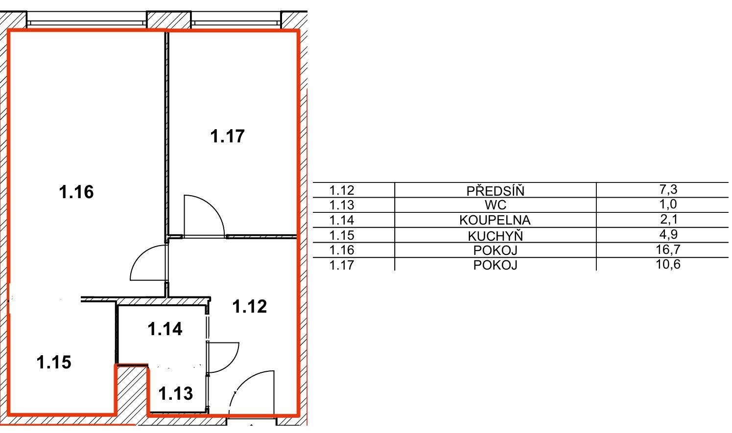 | Dispozice/podlahová plocha: | 2+kk/43 m² |
