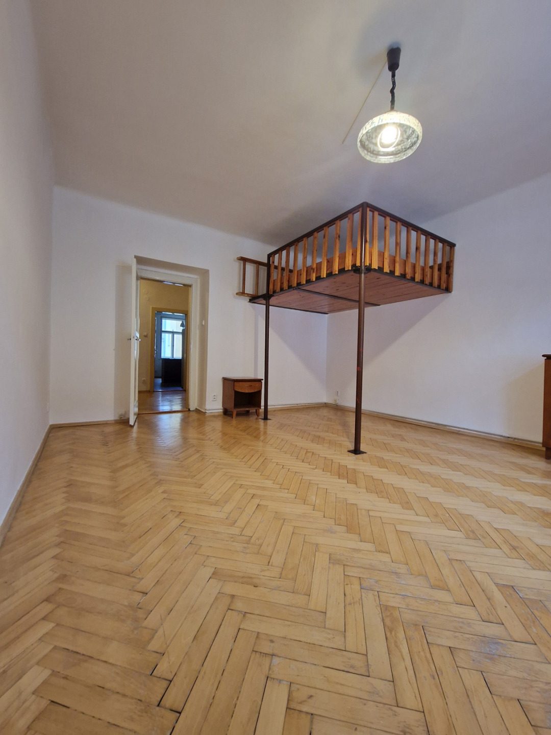 Prostorný obývací pokoj s patrem na spaní, které zajišťuje více úložného a obytného prostoru. Kuchyňská linka je vybavena lednicí s mrazákem, myčkou, trouba na nádobí a velký prostorný jídelní stůl. Koupelna s vanou a pračkou. WC je samostatné Byt je částečně zařízený, k nastěhování dle dohody.