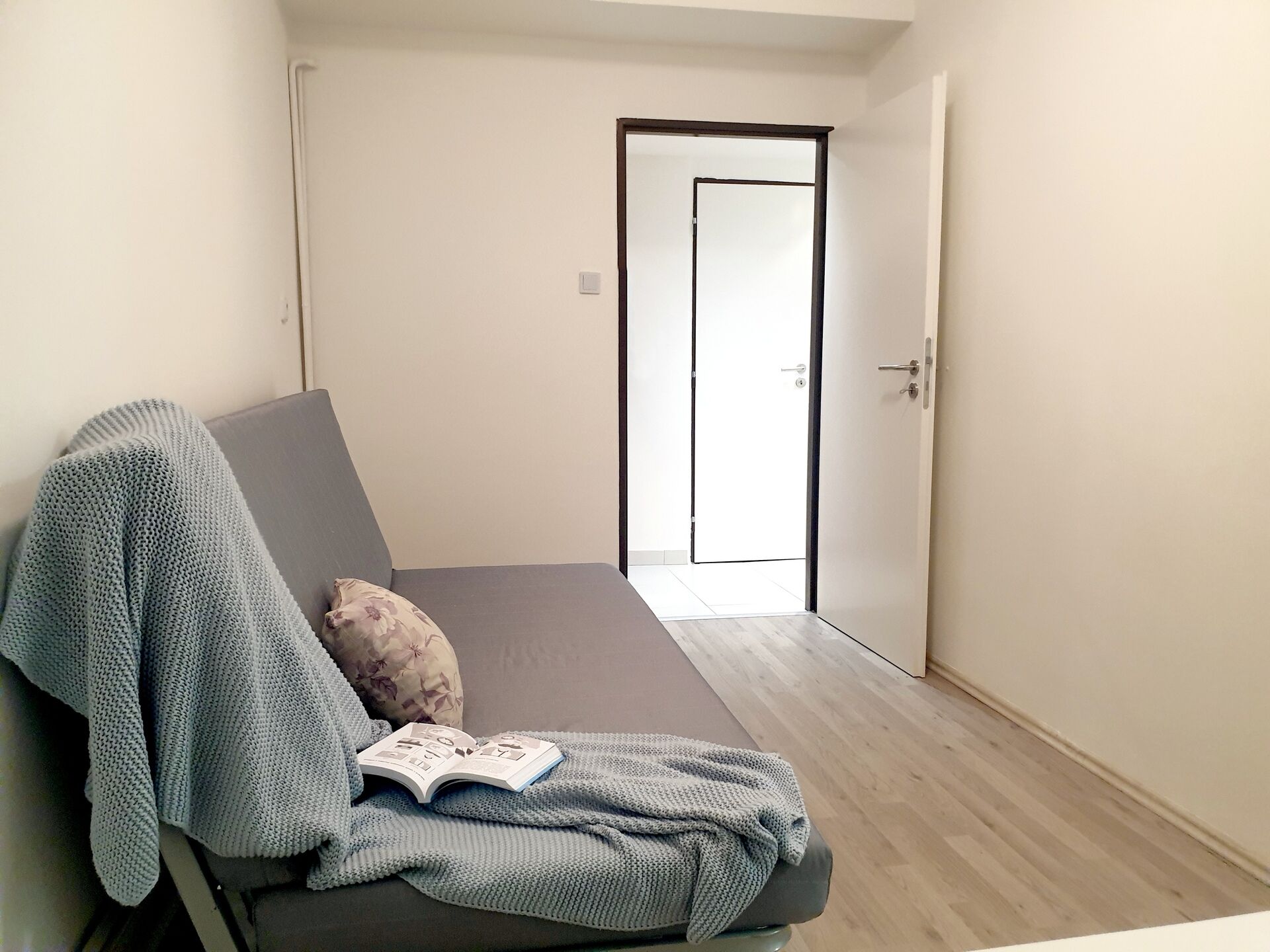 Nově zcela zrekonstruovaný a částečně zařízený byt v klidné části v zeleni, 2+kk, 40 m2, navíc velká komora v bytě a sklípek přímo před bytem.