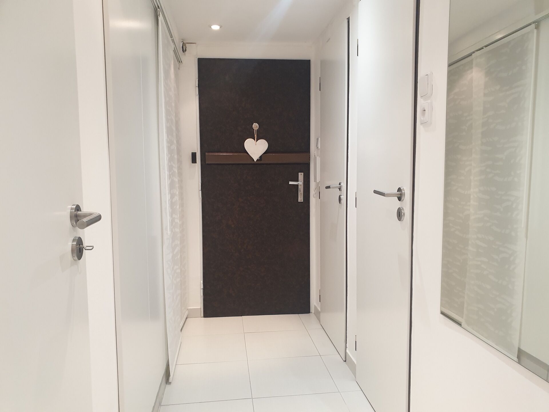 V chodbě 2 vestavěné skříně, věšáková stěna, zrcadlo. V koupelně vana se skleněnou vanovou zástěnou pro sprchování, koupelnové doplňky, topný žebříček, mělká pračka. Samostatné závěsné WC. V prostorné komoře policová skříň přes celou stěnu + další hluboké police.