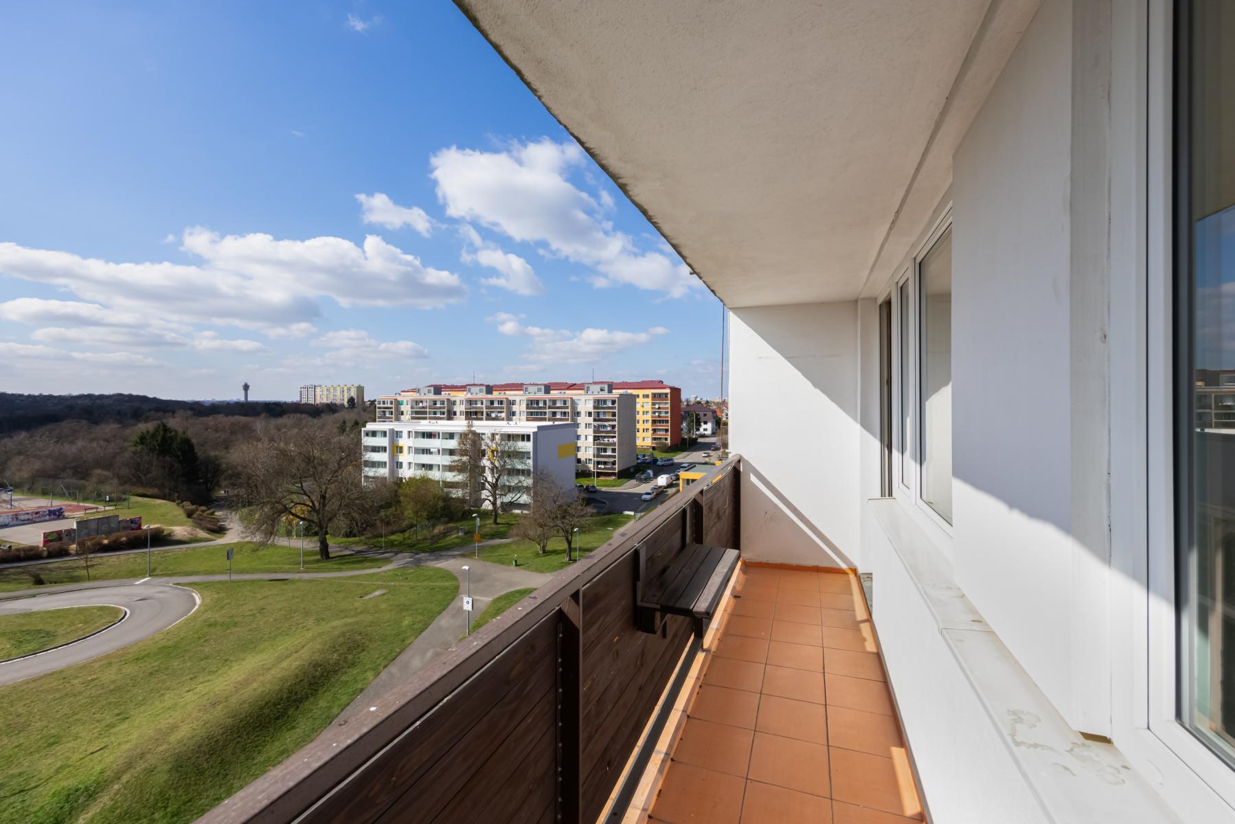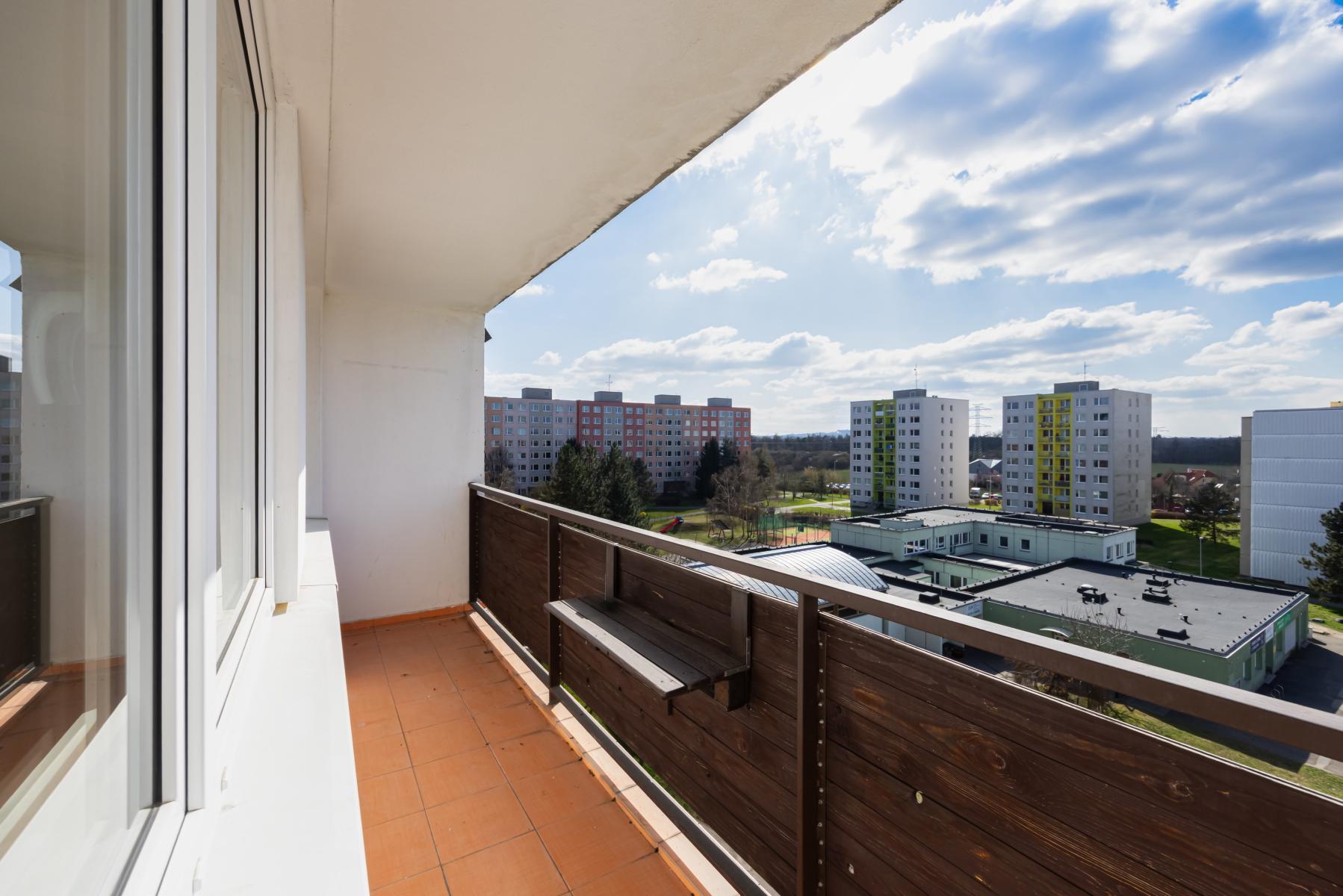 Byt se nachází v 5. patře panelového domu a má ideální orientaci na východ a západ, díky čemuž je krásně prosvětlený po celý den. Celková podlahová plocha činí 90,42 m and sup2;.