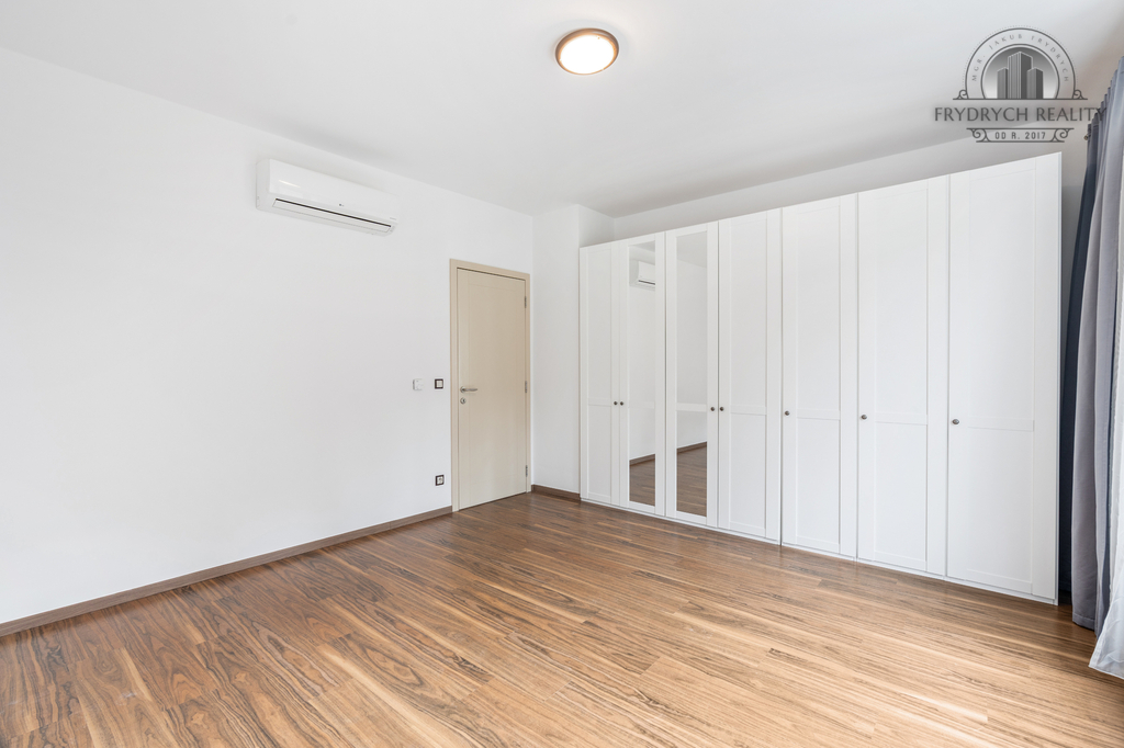 Byt je bez nábytku – zůstávají záclony, závěsy a velká šatní skříň, dále je zde jedna vestavěná skříň v hale.