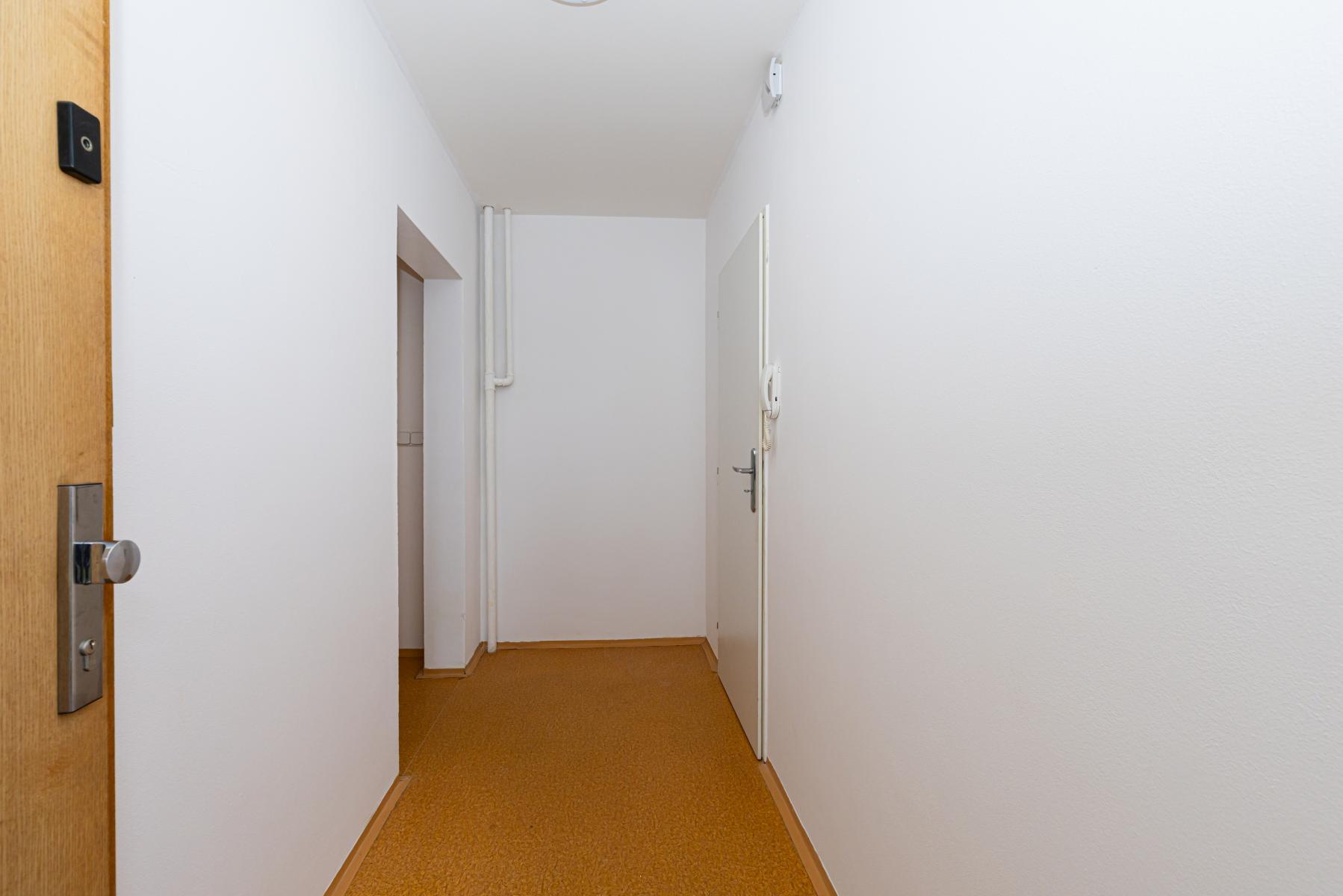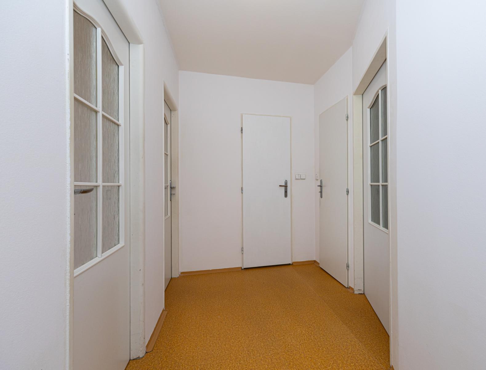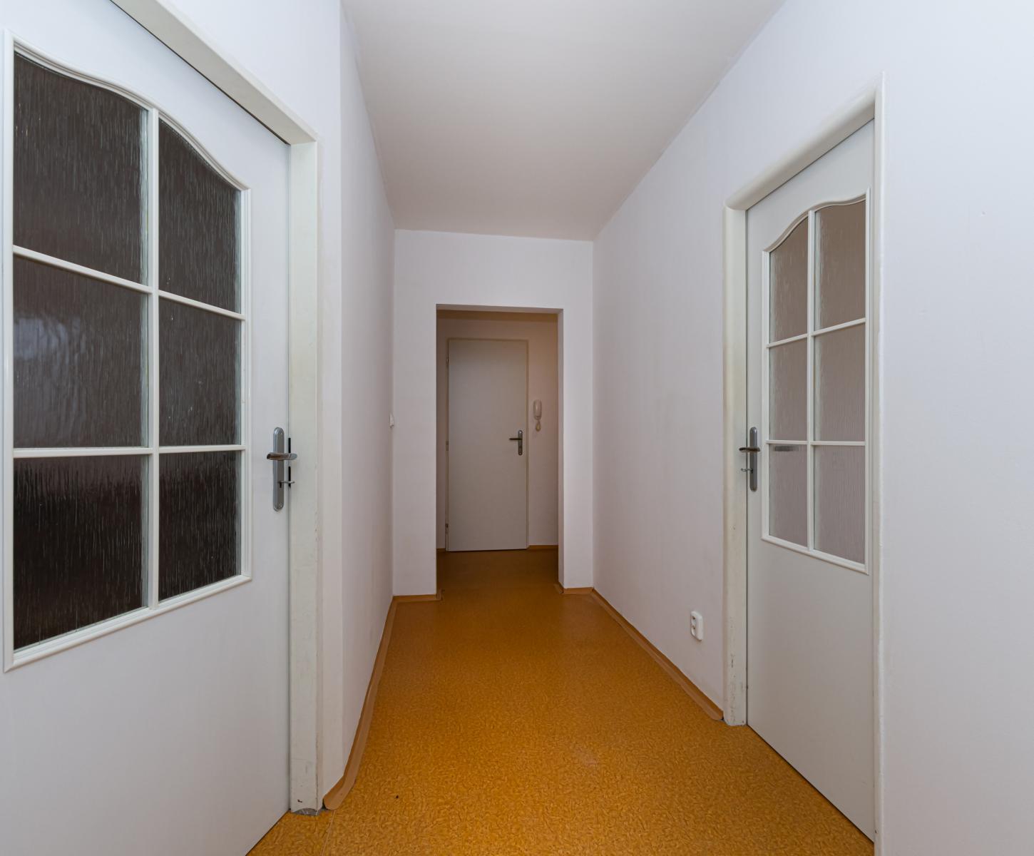 Byt je ve velmi udržovaném stavu, je zde nová bílá výmalba a v celém bytě je na podlaze PVC (lino). Pokoje jsou bez zařízení.