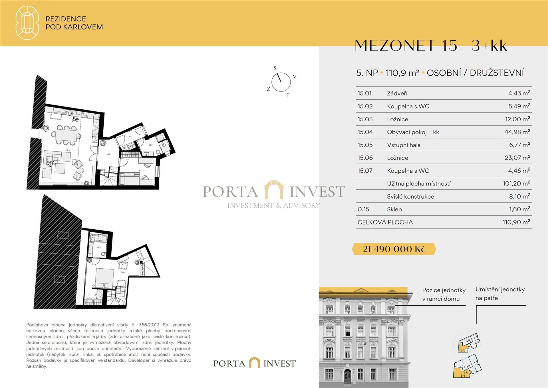 Hledáte výjimečný domov, který spojuje velkorysý prostor, prestižní lokalitu a nezapomenutelné výhledy? Představujeme vám unikátní byt 3+kk o působivé výměře 106,3 m² v exkluzivní Rezidenci Pod Karlovem.