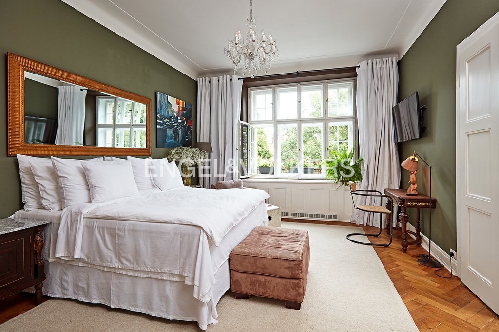 Centrální místností bytu je obývací pokoj s jídelním prostorem. Apartmán disponuje dvěma ložnicemi, jedna z nich je orientovaná do klidného vnitrobloku a je z ní vstup na balkon. Na rekonstrukci byly použity kvalitní materiály, jako je mramor, vysoce jakostní dřevo a luxusní doplňkové dekorační předměty. Nezapomenutelná atmosféra apartmánu v neopakovatelném stylu dýchá z každého detailu. Původní renovovaná okna a zárubně dveří. Na podlahy jsou použity parkety a dlažba.