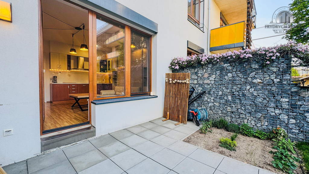 Atelier je velmi tichý, orientovaný na východ a patří k němu krásná předzahrádka.