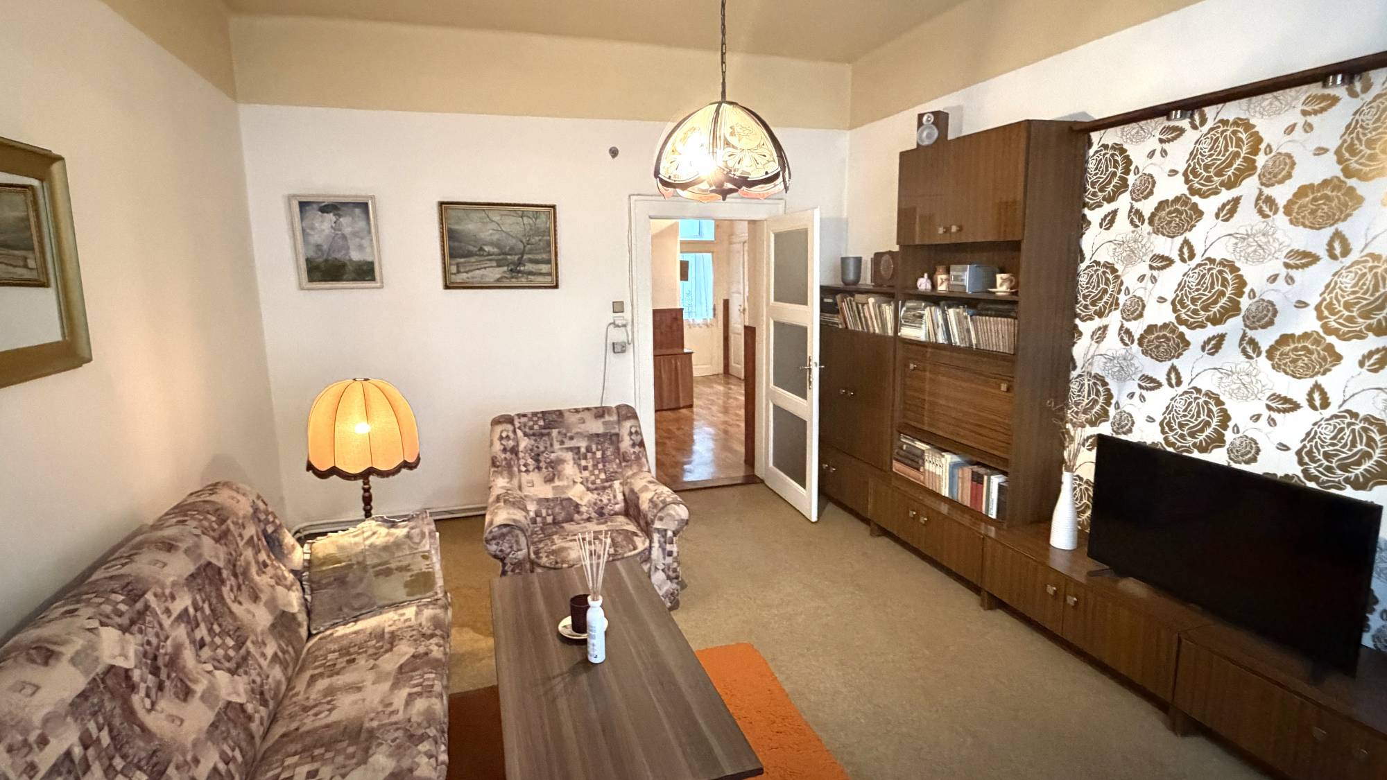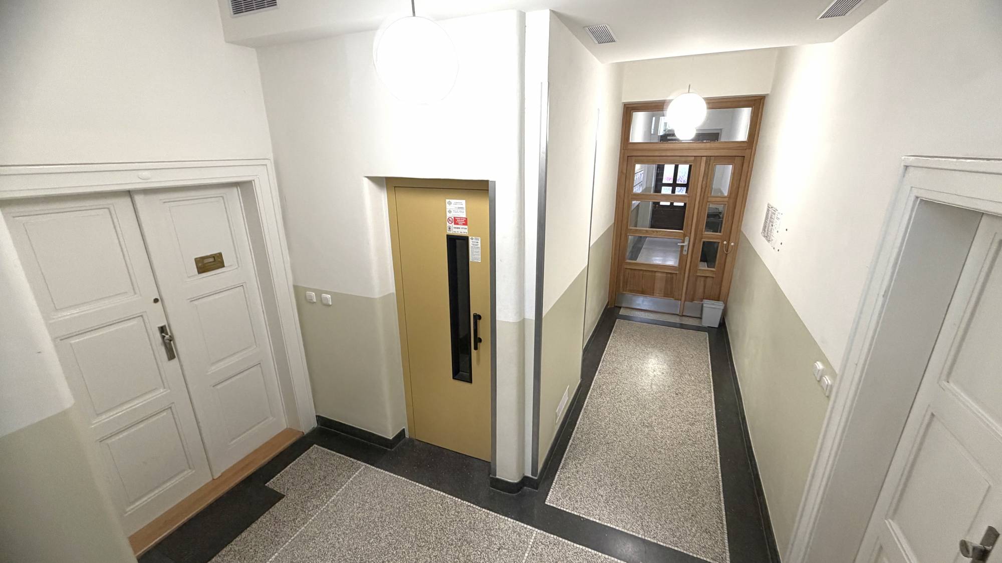 Celková plocha bytu činí 100,3 m², z toho obytná plocha 92 m², balkon cca 1 m² a prostorný sklep v suterénu domu 8,3 m². Dominantou bytu je velkorysá vstupní hala s výškou stropu 3,6 m. V bytě jsou zachovány původní parkety a repasované dvoukřídlé dveře, vysoké stropy cca 3,2 m.