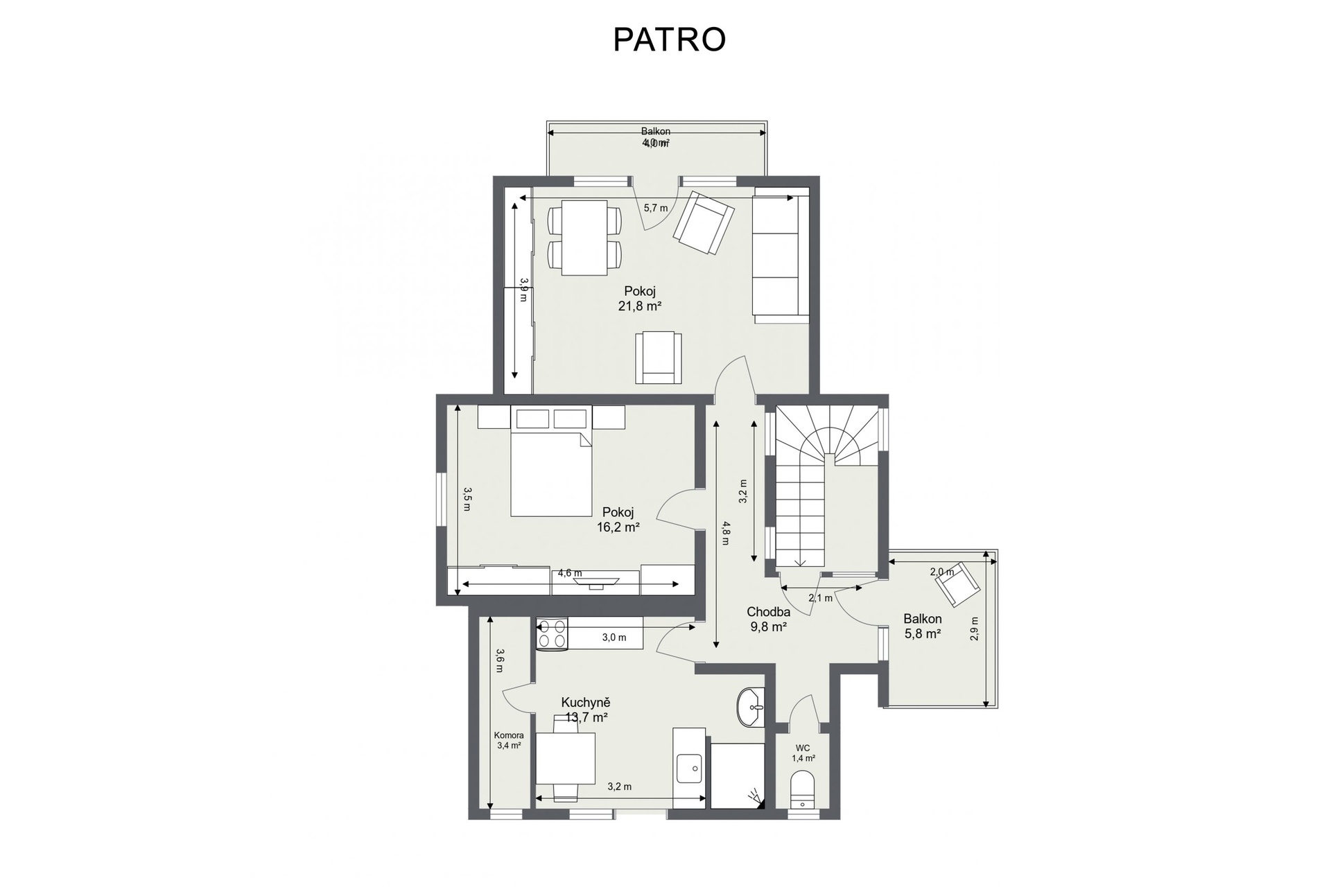 Při rekonstrukci byly kompletně přepracovány i všechny technické rozvody, včetně instalace nového plynového kotle, což zaručuje bezproblémový chod všech domácích systémů a minimalizuje potřebu dalších investic v dohledné době. Dům je plně napojen na všechny inženýrské sítě, což zajišťuje vysoký standard bydlení.