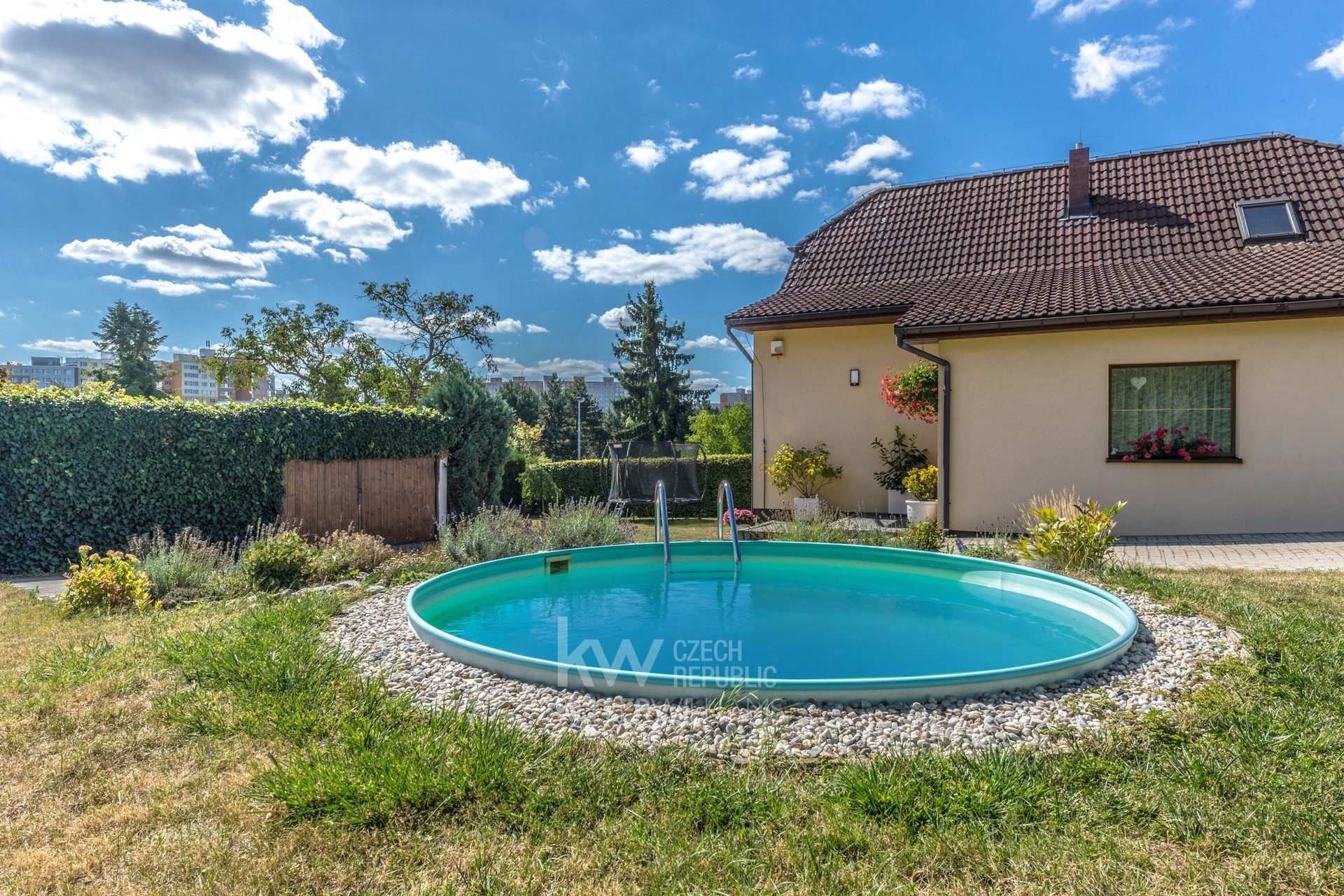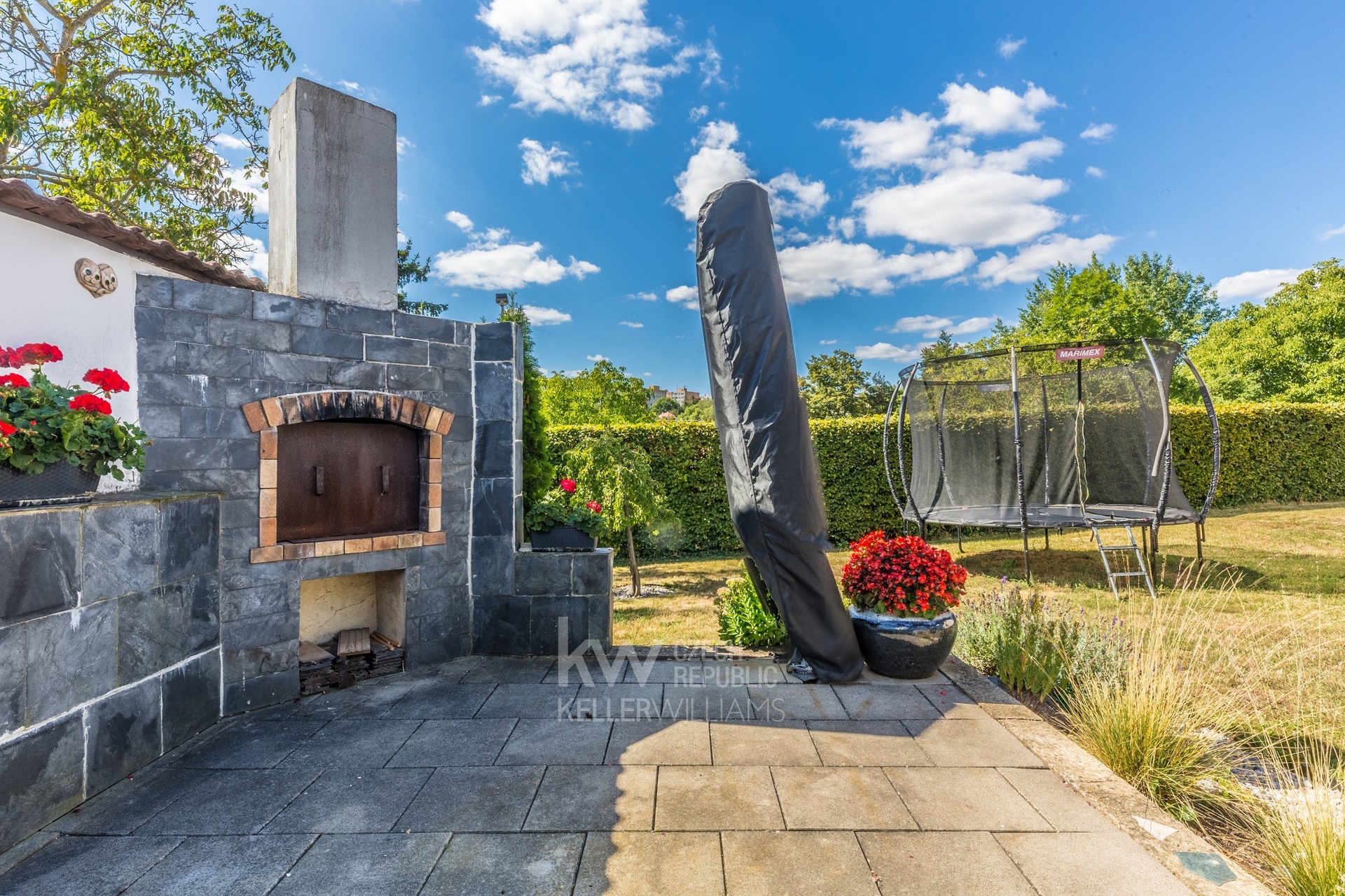 Udržovaná zahrada kolem domu je perfektní pro ty, kteří chtějí pěstovat vlastní rostliny nebo si užívat venkovní aktivity. Na zahradě je krb a bazén, které přímo vybízejí k příjemně stráveným chvílím s rodinou a přáteli. K dispozici je také garáž pro dvě auta, další dvě auta je možné parkovat před garáží.
