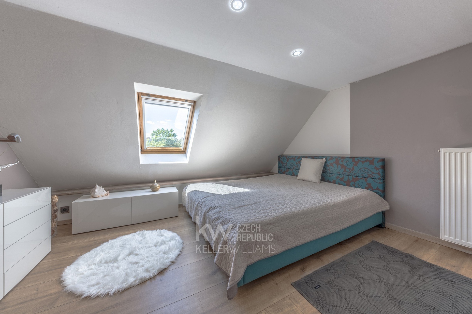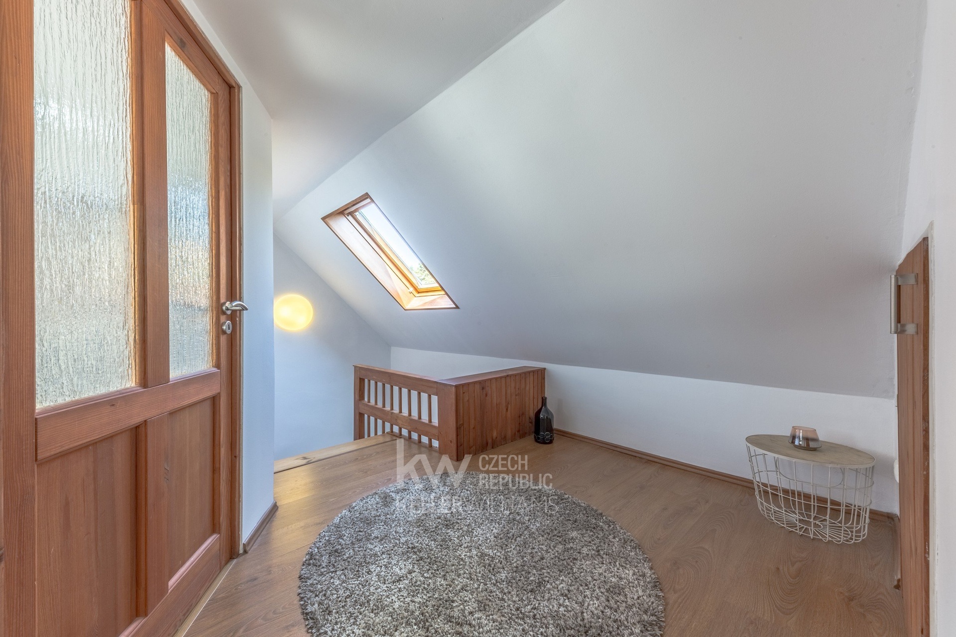 V podkroví jsou dvě samostatné ložnice a další nevyužitý volný prostor s možností rozšíření obytné plochy a vestavby dalších místností.