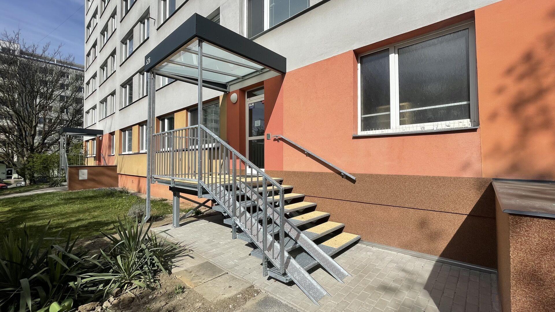 Panelový dům má 8 nadzemních podlaží, byt se nachází v 8. nadzemním podlaží (7. patro). Dům má zateplenou fasádu, střechu i společné prostory po rekonstrukci, repasovaný výtah. Před domem je velkokapacitní parkoviště.