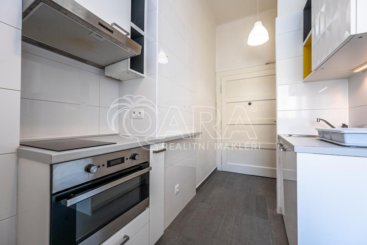 Po vstupu do bytu Vám je k dispozici menší zádveří, kde si můžete odložit kabát či boty. Poté vstoupíte do prostoru kuchyně, která po levé straně nabízí úložné prostory a kuchyňský dřez, po pravé straně pak troubu s varnou deskou. Zároveň ve výklenku můžete využívat jídelní stůl, který díky dostatku světla může stejně tak skvěle posloužit jako pracovní kout. Z prostoru kuchyně je pak přístupná koupelna se sprchovým koutem, přirozeným odvětráváním do světlíku a bojlerem, který zajišťuje ohřev vody. K užití je také pračka, která je schovaná pod deskou s umyvadlem a nikde tak zbytečně nepřekáží, jak to v bytech této dispozice často bývá. V případě párového soužití jistě oceníte, že toaleta je samostatná.
