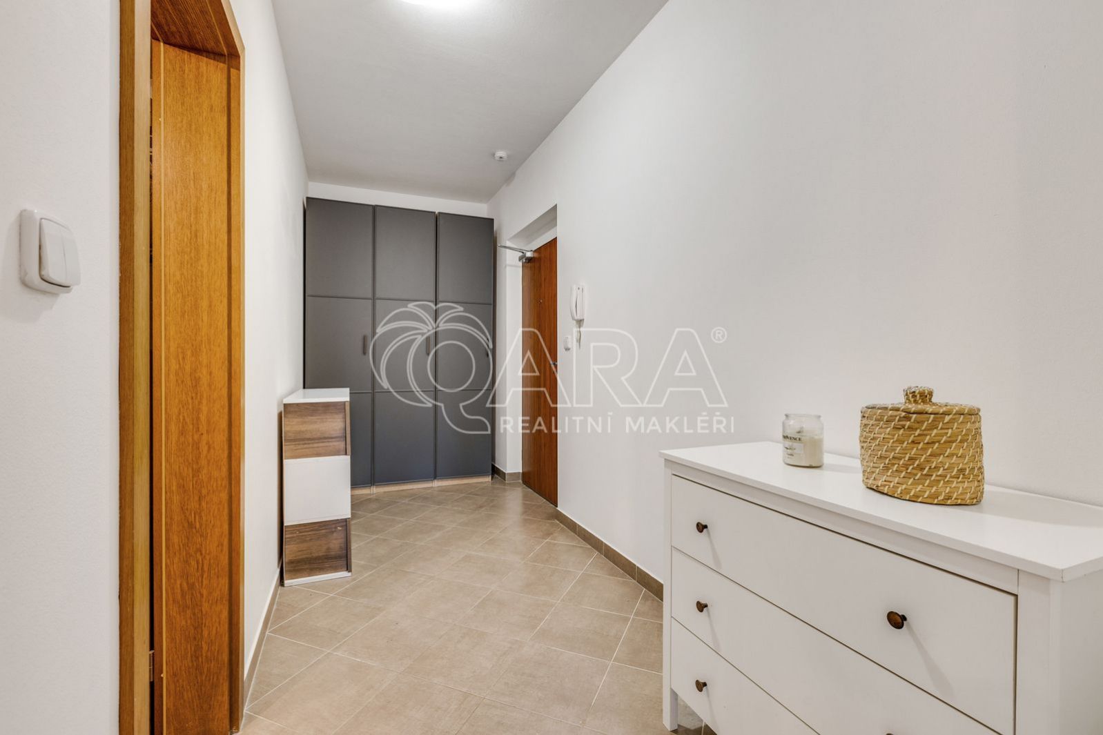 Jednotka, která prošla tento měsíc revitalizací, se nachází ve zvýšeném přízemí. Stejně jako prostorná komora, která je praktickým bonusem pro budoucí majitele, kteří díky ní budou mít dostatek úložného prostoru.