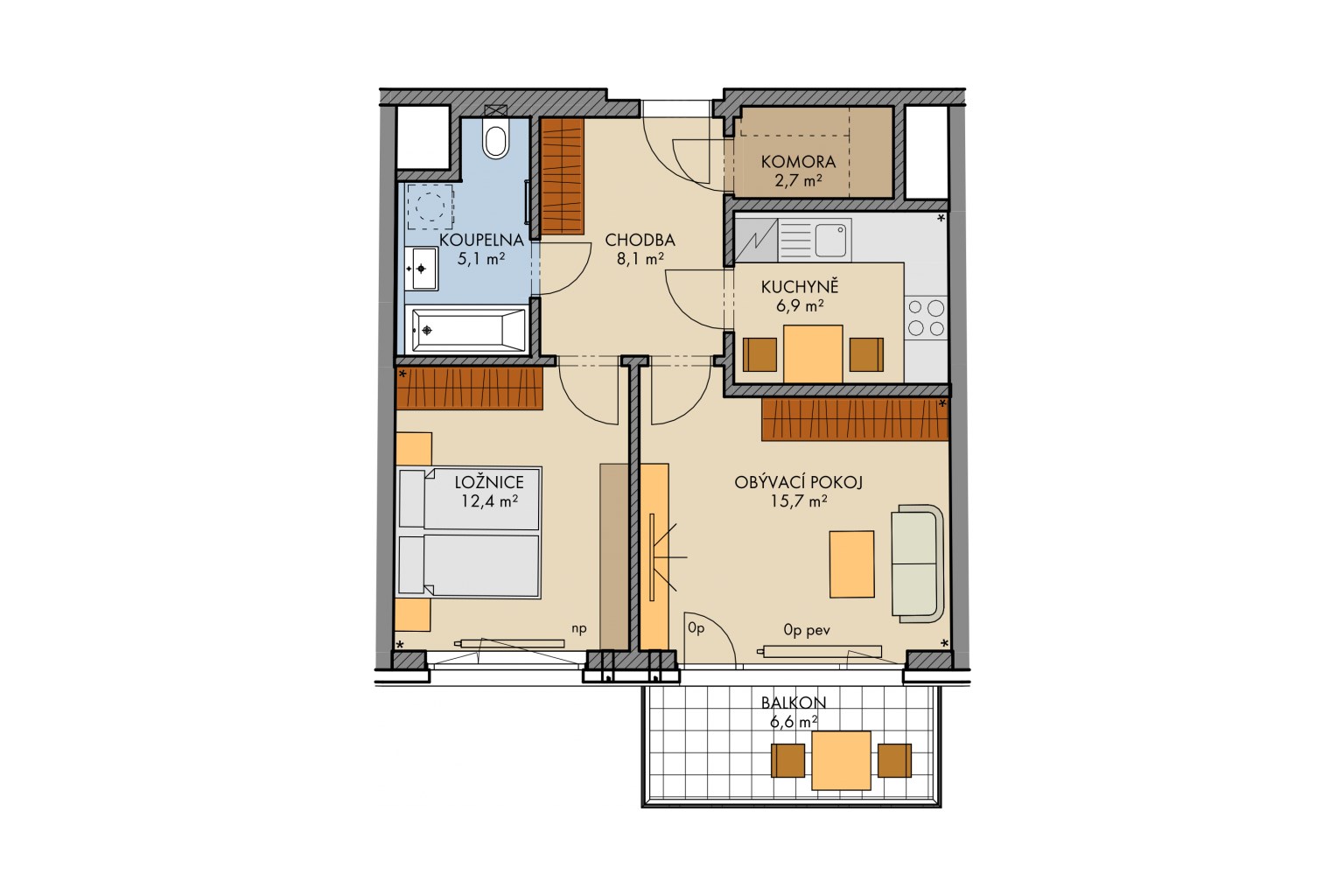 Nabízíme nový byt 2+1 o podlahové ploše 53,80 m2 s balkónem (6,60 m2) ve zcela novém projektu Nový Opatov developerské skupiny FINEP.