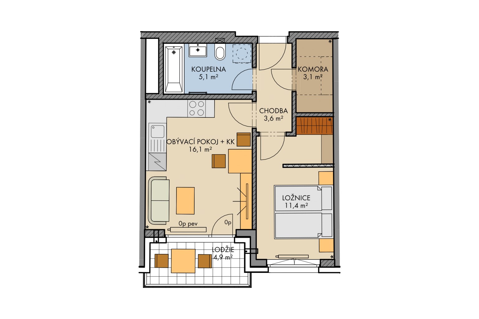 Nabízíme nový byt 2+kk o podlahové ploše 41,40 m2 s lodžií (4,90 m2) ve zcela novém projektu Nový Opatov developerské skupiny FINEP.