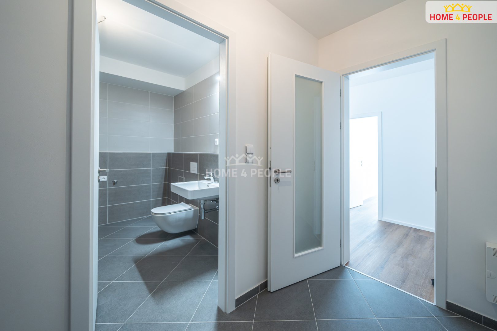 Klientské změny bytu byly provedené v nadstandardu, to znamená, že byly použity prémiové materiály v koupelně a na toaletě.