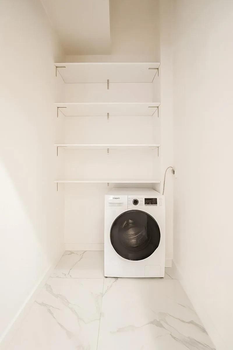 Byt je připraven k pohodlnému bydlení je kompletně vybaven nábytkem i spotřebiči, včetně kuchyňského vybavení, nádobí a příborů. K dispozici je také samostatná komora/úložný prostor s pračkasušičkou v jednom (2v1) a TV.