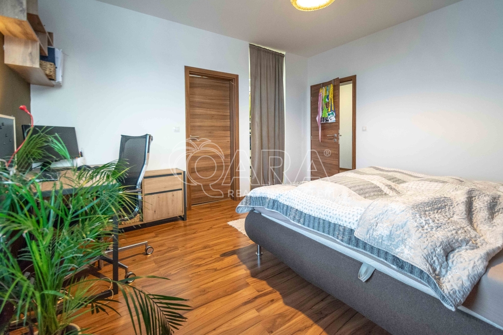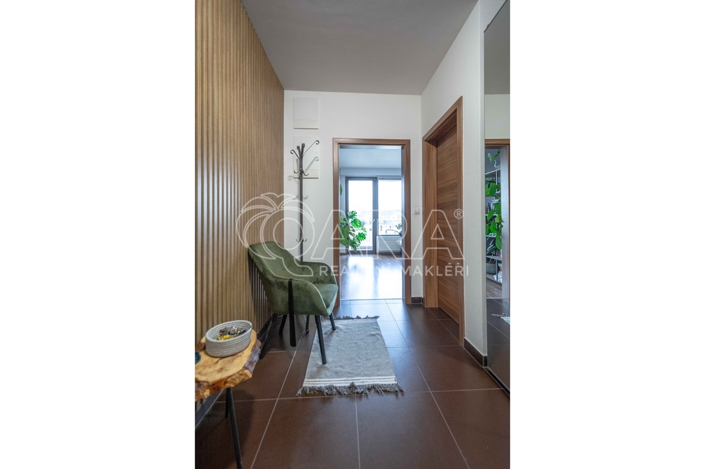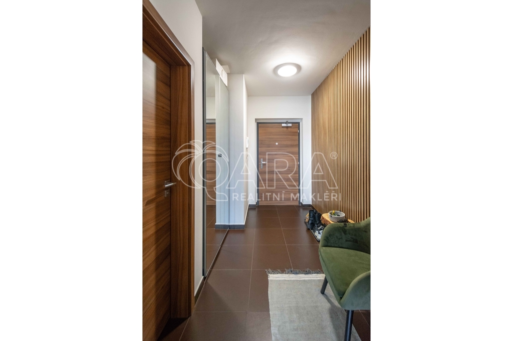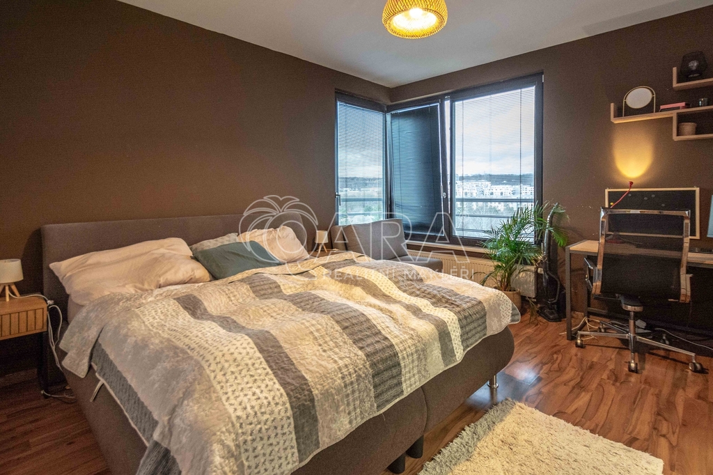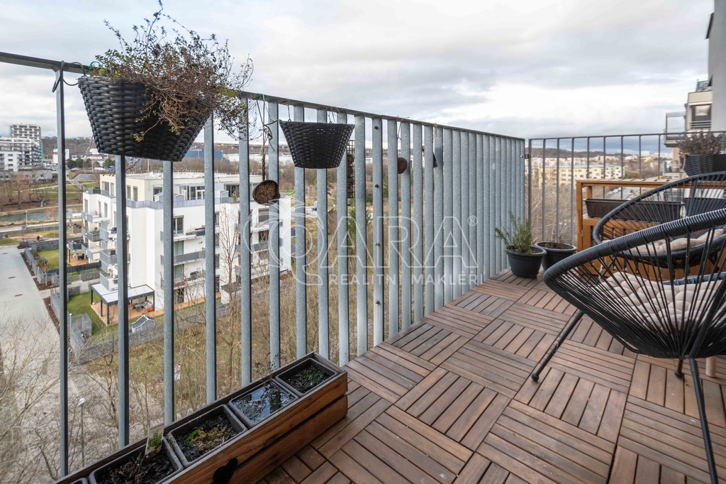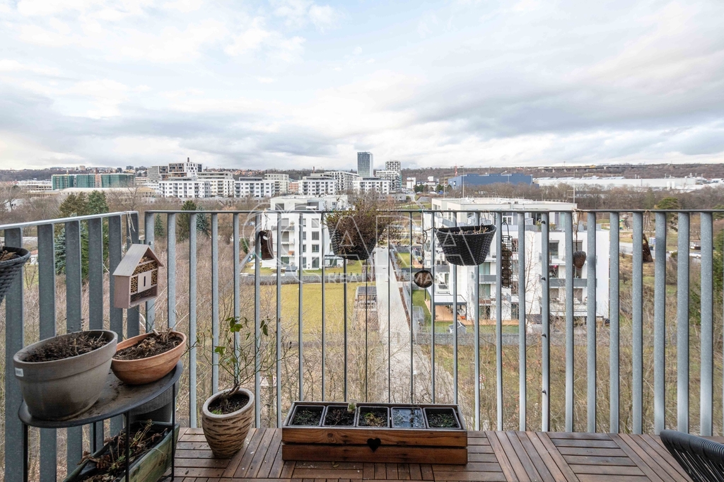 Celková plocha bytu 59,6 m2 + sklep + prostorný balkón o velikosti 5,7 m2, ze kterého můžete sledovat západ slunce nad Prahou. Kuchyňská linka včetně vestavěných spotřebičů: myčka, lednice s mrazákem, el. trouba, indukční deska a digestoř.