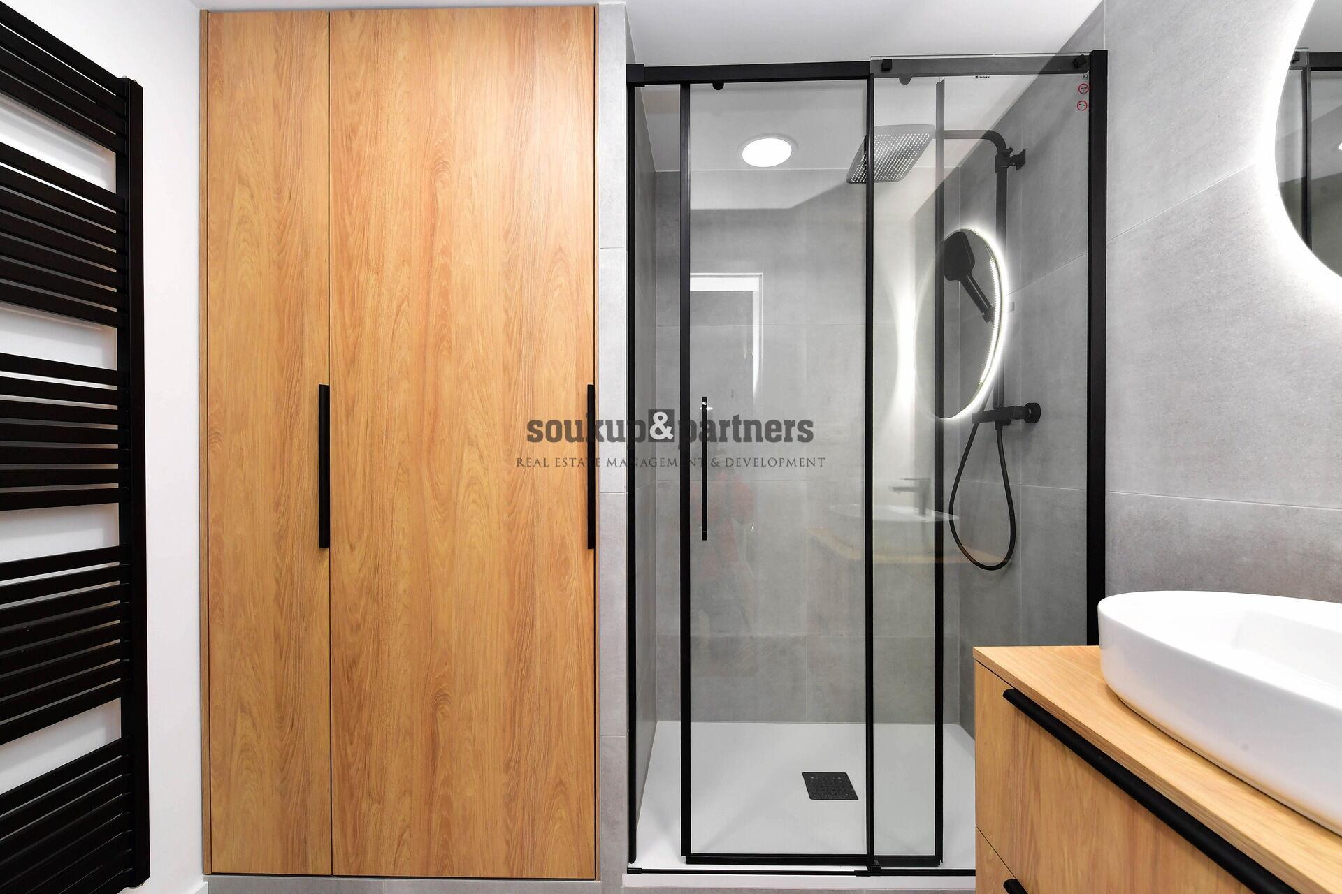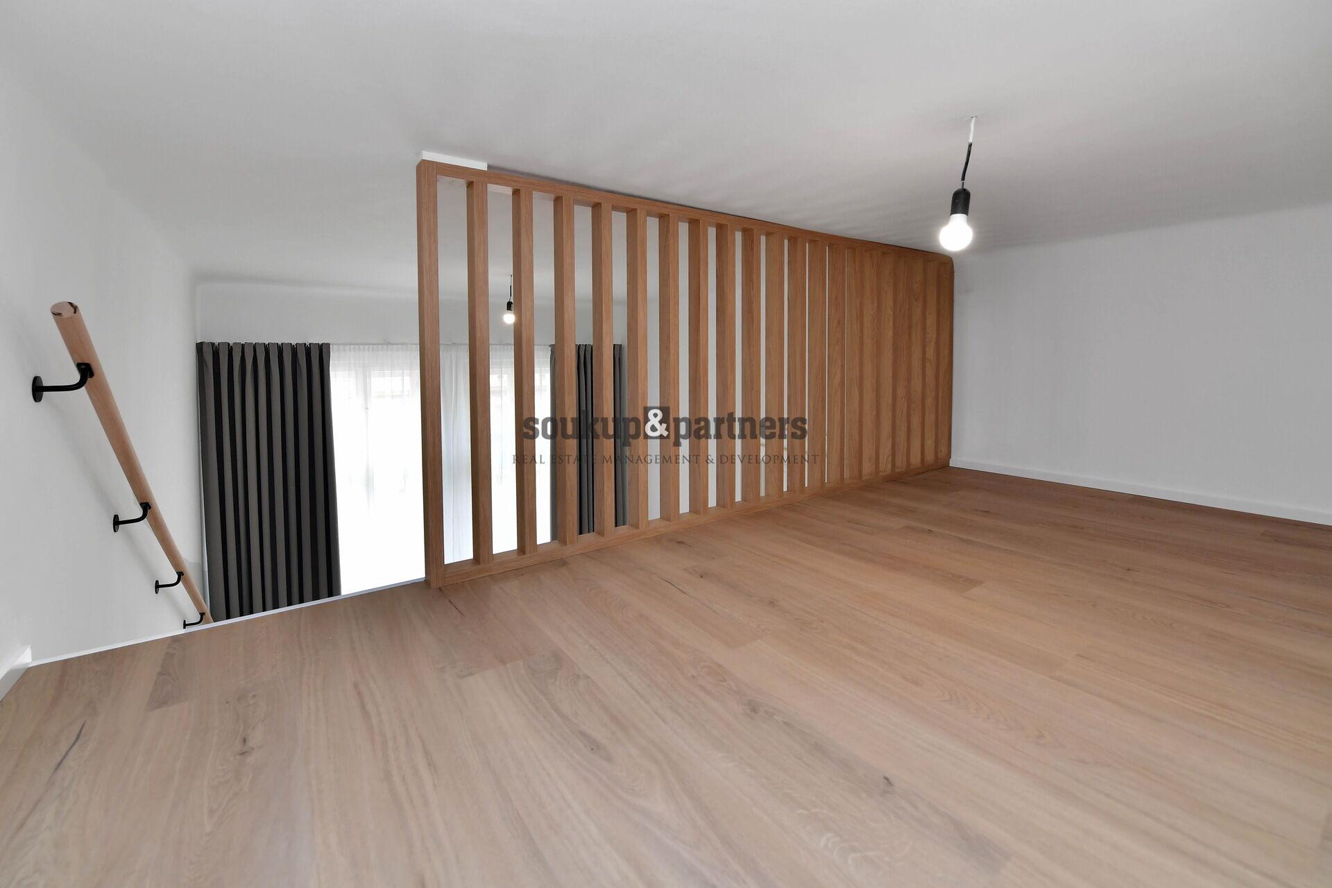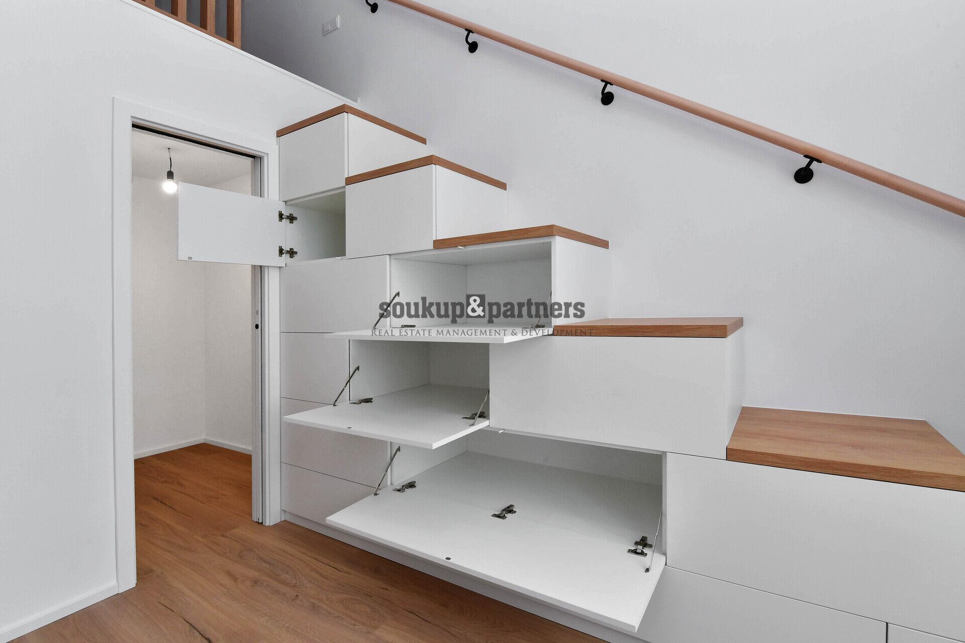 Byt 2+kk/ Šatna - 43 m2, který se nachází ve 4.NP cihlového domu jen 2 min. chůzí od Vltavy a 5 min chůzí od Anděla. Byt je po kompletní, velmi náročné a nákladné rekonstrukci na základě návrhu bytového architekta - nová kuchyňská linka vč. značkových vestavěných spotřebičů, nové vinylové podlahy v dekoru světlého francouzského dubu, interiérové dveře, prostorné patro na spaní, promyšlené úložné prostory, vestavěná šatna pod patrem, nová dřevěná dvojitá okna, koupelna se sprchovým koutem, značkovými bateriemi a wc s bidetovou sprškou, úložný prostor na pračku a sušičku a bytem prochází designová betonová stěrka a led podsvícení. Vytápění a teplou vodu zajišťuje nový plynový kondenzační kotel s digitálním termostatem a možností ovládání přes aplikaci a mezi dalším vybavením bytu je domácí videotelefon. Dům se průběžně revitalizuje - společné prostory, kamerový systém, vstupy na čip, výtah a další. Vzhledem k vynikající poloze bytu je nabídka vhodná jak pro vlastní potřeby, tak na investici v rámci širšího centra Prahy s polohou u Vltavy a u Metra B, zast. Anděl. OV - možnost financovat hypotečním úvěrem, který rádi zařídíme. Pro více informací volejte manažera nabídky.