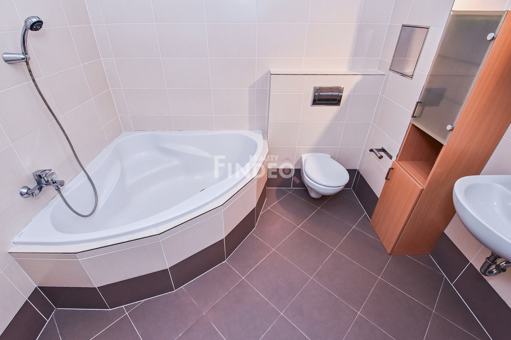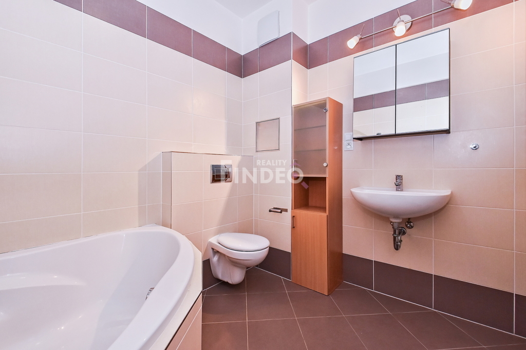 Dlouhodobý pronájem mimořádně prostorného a světlého bytu o dispozici 2+kk a výměře 71,5 m2, umístěného v přízemí (1.NP) cihlové novostavby zdařilého projektu Nad Modřanskou roklí, ul. Papírníkova. Předností bytu je bezbariérový přístup do domu i bytu, terasa (8,4 m2) orientovaná na JZ, prostorný sklep a v ceně je i garážové parkovací stání v domě. Předsíň je vybavena velkou vestav. skříní se zrcadlem, botníkem a věšákovou stěnou, dostatek úložného místa poskytuje i komora v bytě. Do koupelny s vanou, WC, umyvadlem a žebříkovým radiátorem se vejde i pračka. Dominantou bytu je zajímavě řešený, prostorný obývací pokoj (36,5m2) s kuchyňskou a jídelní částí. Moderní kuchyňská linka vybavená vestav. spotřebiči (lednice s mrazákem, mikrovlnná trouba, sklokeramická varná deska, elektrická multifunkční trouba, digestoř a dřez s baterií, myčka nádobí o šířce 60 cm) nabízí dostatek pracovních ploch a úložných prostor. V místnostech jsou nainstalována stropní svítidla. Ložnice je orientována na západ. Byt působí velmi příjemným dojmem, použité materiály designově i kompozičně ladí a dodávají na útulnosti. Přímo u domu je zastávka MHD – autobusy 215, 165 na Kačerov či Jižní Město. Lokalita je velmi vyhledávanou pro dostatek zeleně, v bezprostřední blízkosti je přírodní park Modřanská rokle, kde jsou vybudovány cyklostezky. Hledáte-li pěkný prostorný byt v klidné lokalitě s výbornou dopravní i občanskou vybaveností, pak to může být právě tento. K dispozici bude od 1.5.2026, prohlídky jsou po dohodě možné již nyní.